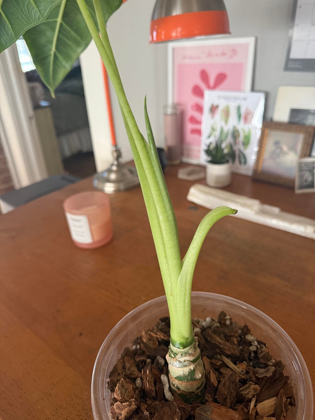 Any advice for me on my green velvet? I know the pot is large, but he seems to be happy so I don’t know if I should disturb with a repot. He’s pushing a new leaf. I’m not sure if he’s close enough to the light because his first leaf is tall. I mean he’s 16 inches from the grow light. He’s in a chunky alocasia mix and only wants water every 22-23 days. I fertilize with a mild purive 4-5-5 every watering and there’s osmocote sprinkled in there. Does he need any supplements?
