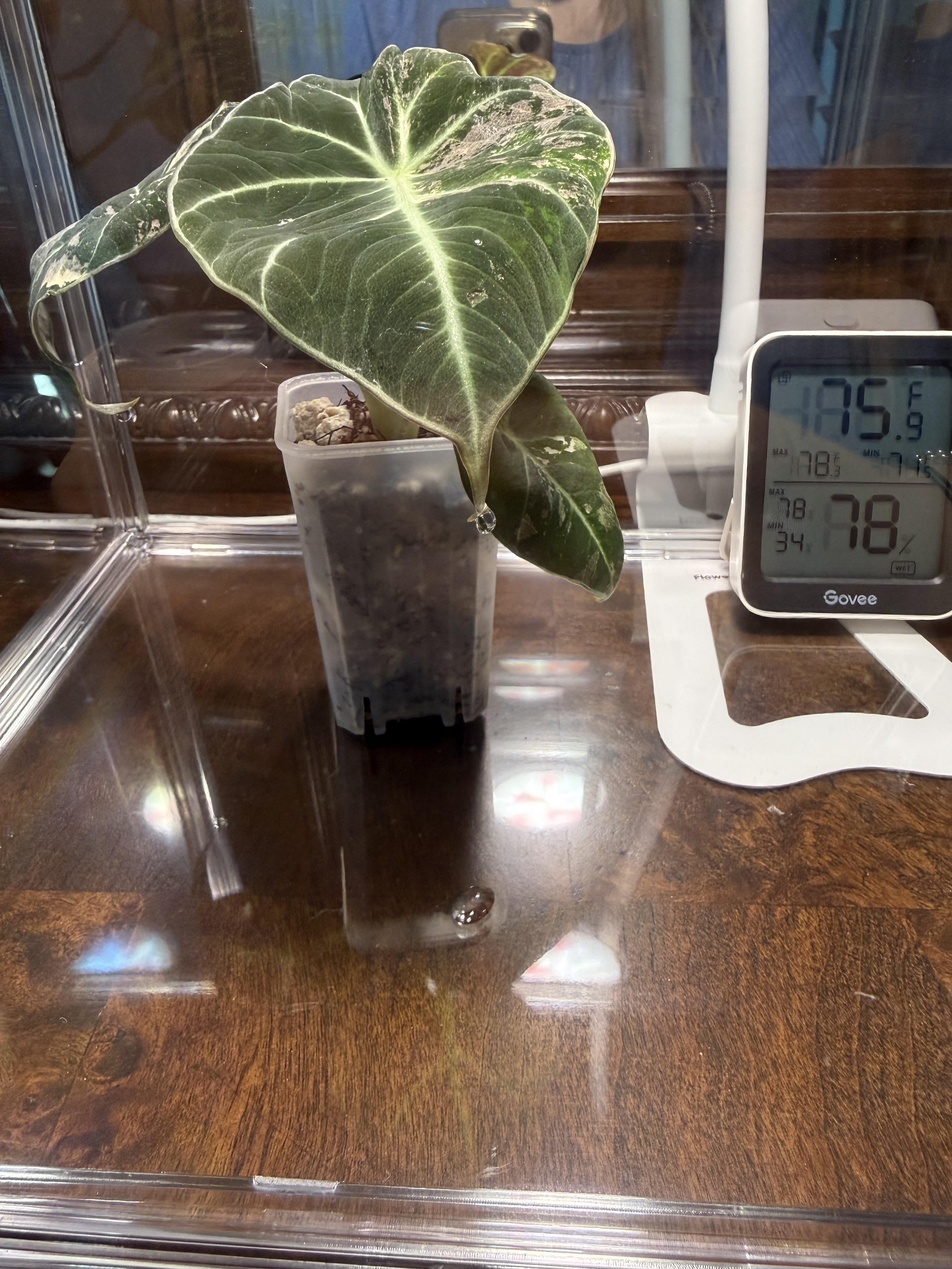 Hi, I’m very new to the world of Alocasia’s. I recently purchased a new pbv pup (I know they are difficult 😖) I have her in an acrylic case with a grow light. Is it normal for it to be sweating water droplets from its leaves?