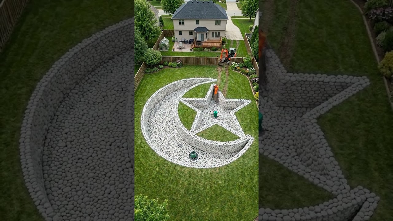 #StarAndMoon #satisfying #backyardgoals #landscaping #koipond #transformation #shorts #oddlysatisfying #gardendesign #modernart #constructionlife