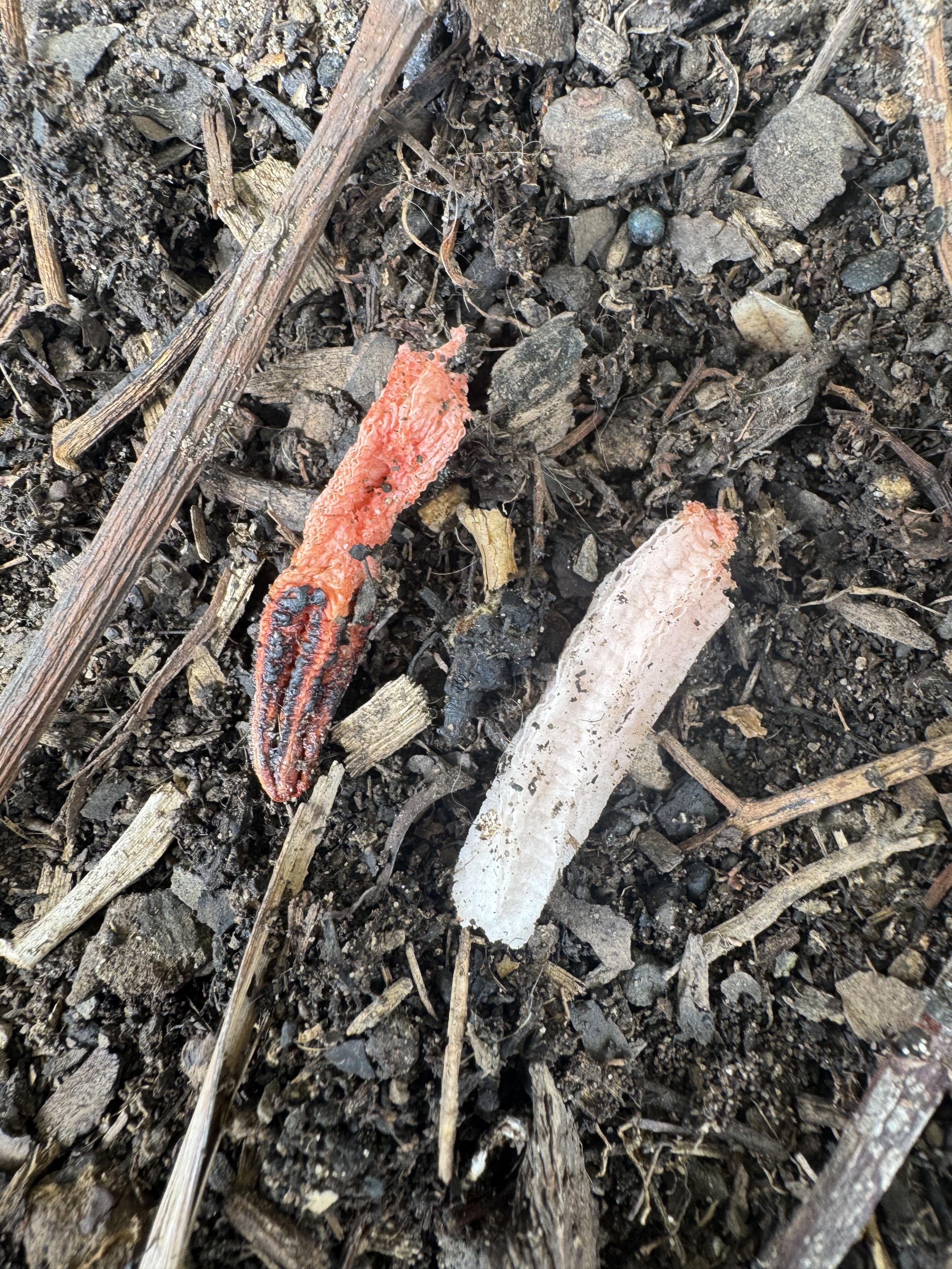 oblivious_fireball 5 days ago A Stinkhorn of some sort. They smell horrible to attract flies that look for a rotting corpse or dung, and get covered in spores on the way.