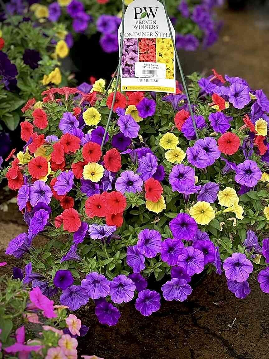 Rowe Farms has more designer baskets than you could dream of. One other that left me mesmerized was one called Nightingale. This mix is simply stunning, as it features Supertunia Vista Jazzberry petunia and two Superbells calibrachoas, Dreamsicle and Honeyberry.