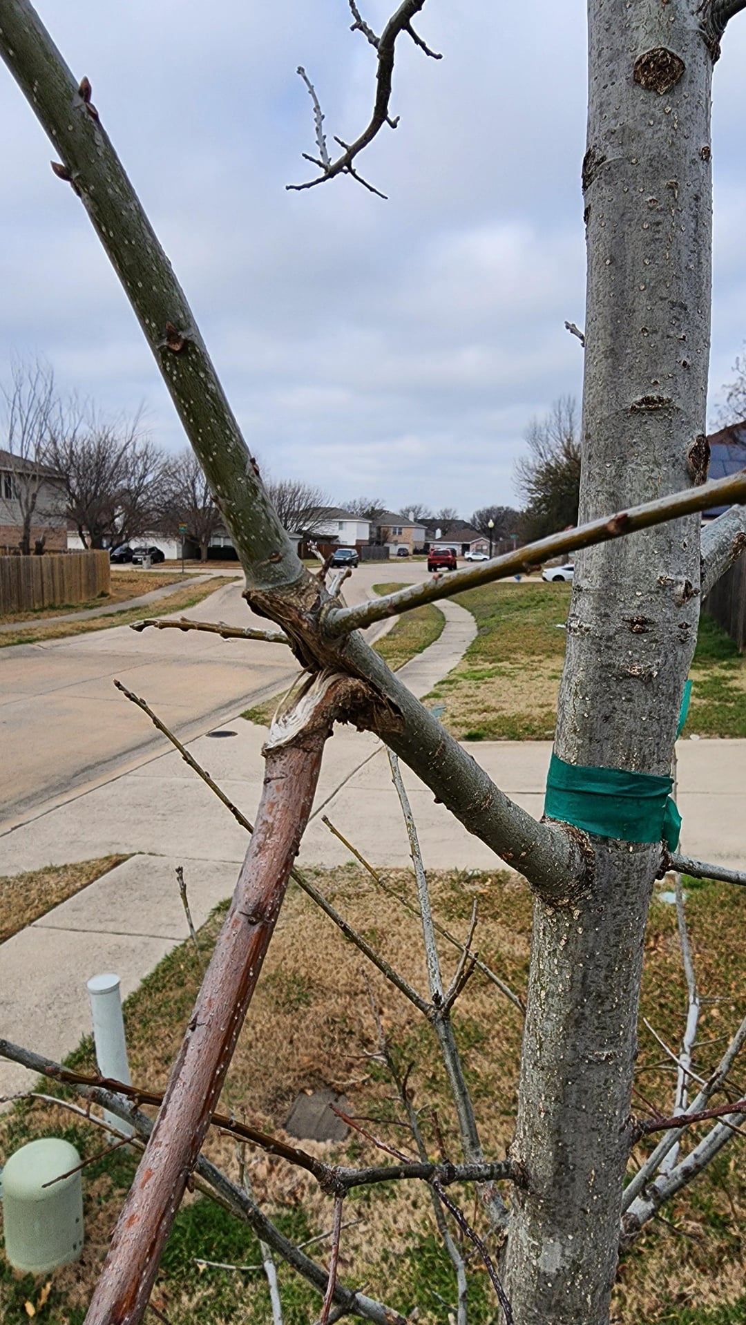 Is this common practice for shumard oaks or did I get swindled? How should I proceed with "shaping" this tree for it to grow the best it can in the future? To top it off, looks like 2 of the main branches in the middle were damaged during transit so they were split in half at some of the joints. Should I remove the entire split branch or will it heal over this damage? I was hoping to keep the branch since removing it will create a large empty spot in the middle right (or left, depending on which side you're looking at) of the tree, but I'm pretty sure the way it's split, I'll have to cut the entire branch off. (I just cut off the bottom piece that was hanging down from the crack for now).