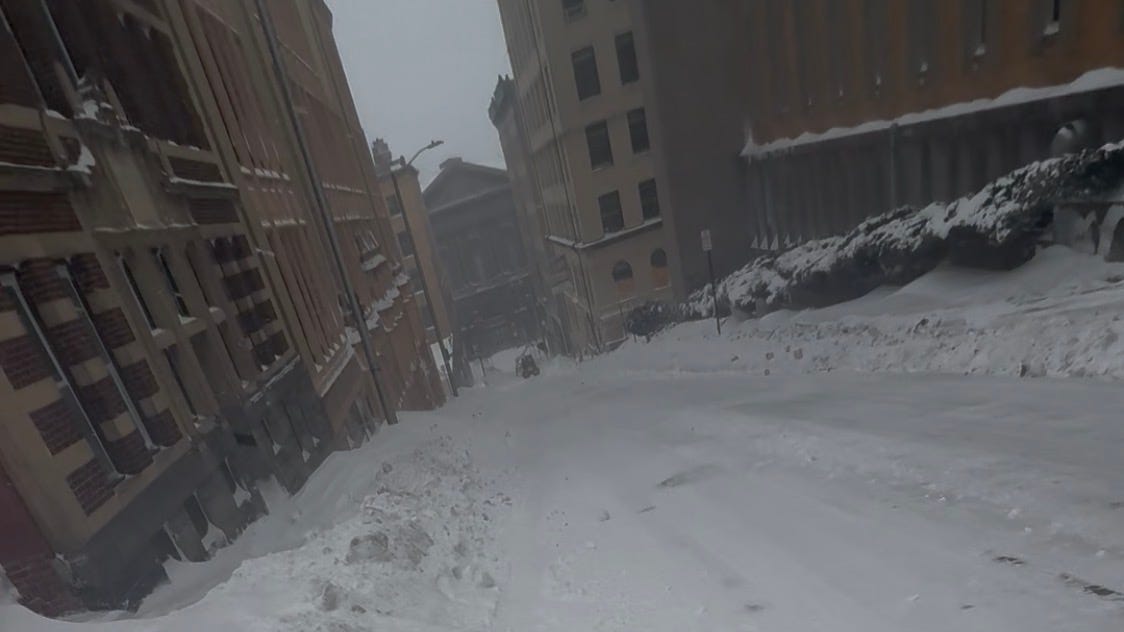 Steve Phillips couldn’t resist getting out his splitboard and taking a ride down one of Worcester’s steepest downtown hills.