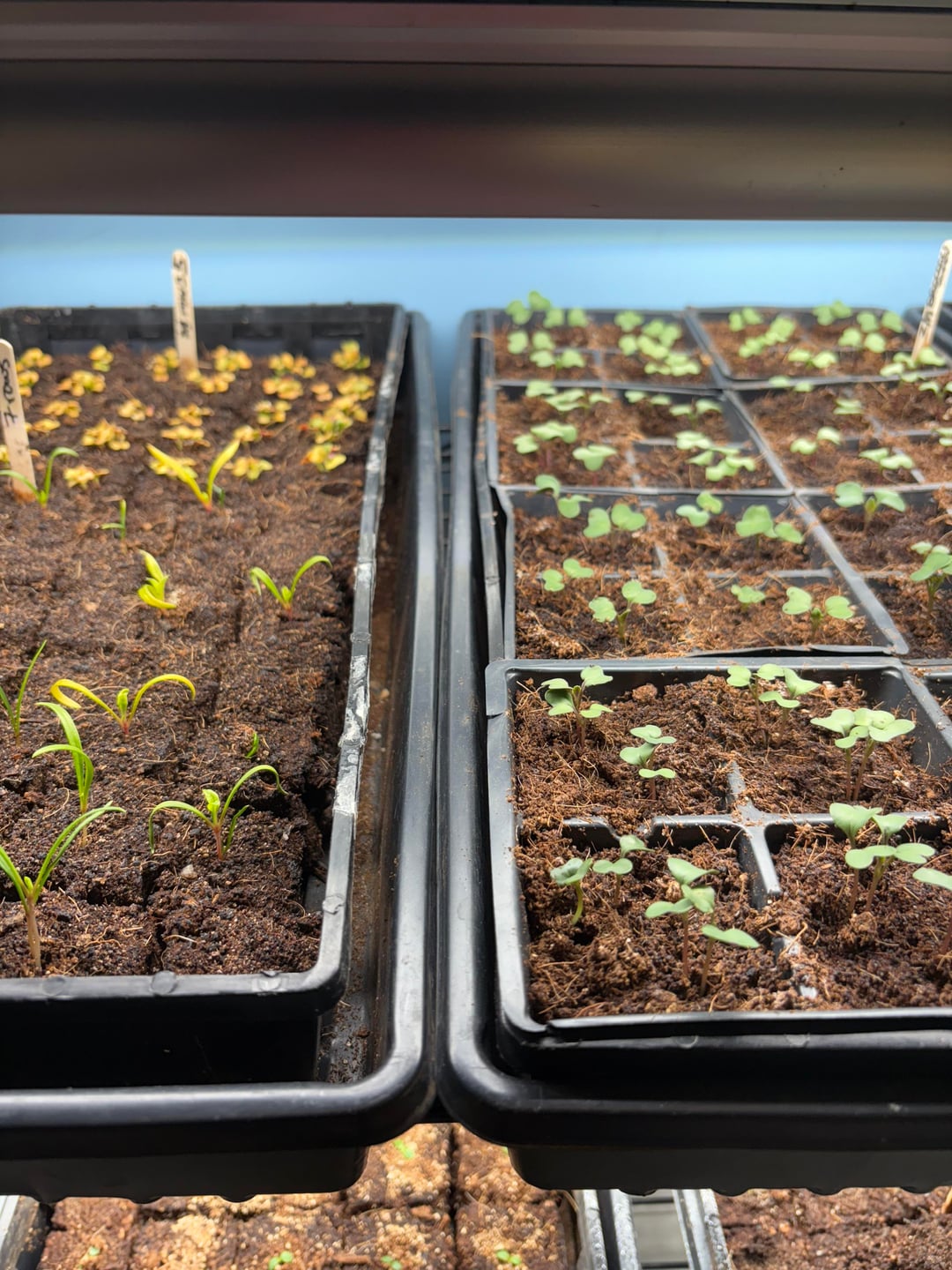 Hi all- urban farmer here and having an unusual challenge with some seedlings/cotyledons turning yellow. My main concern are the bok choy (1st pic) which are sharing a tray with some spinach seedlings (2nd photo). Usually my brassicas have no issues but this is the second sowing that is being weird (had to toss broccoli seedlings with weird coloration). Here’s also a photo of the bok choy tray next to broccoli & collards for comparison (3rd pic).