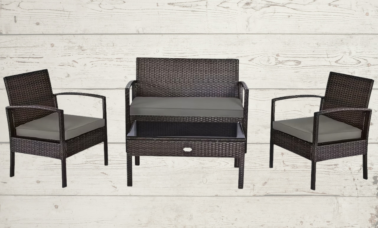 Target is offering a major markdown on one of its best-selling outdoor seating options, bringing the Costway 4-Piece Patio Rattan Wicker Furniture Set down to one of its lowest prices of the season. The compact conversation set includes a loveseat, two single chairs and a tempered glass coffee table, making it an easy solution for small patios, balconies, decks or backyard seating areas just in time for spring.