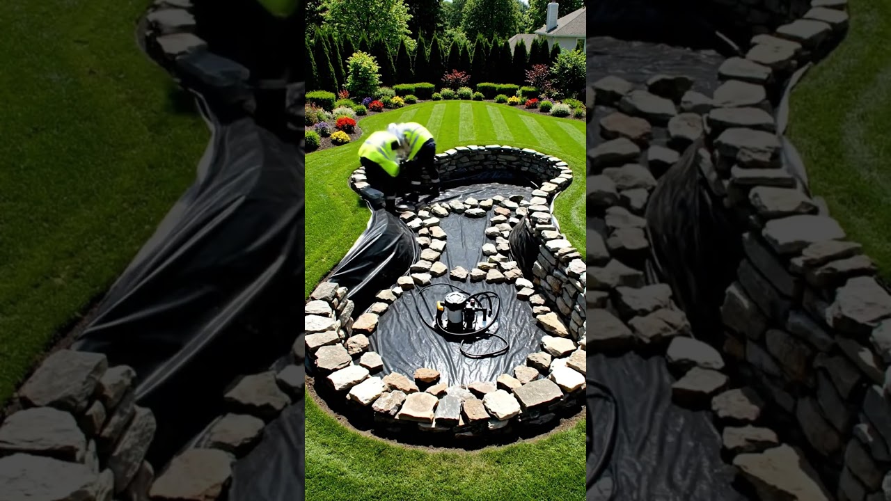 We transformed a perfectly manicured lawn into a stunning backyard pond oasis in record time! Watch the incredible transformation unfold in seconds, from an empty grass patch to a fully functioning water retreat.