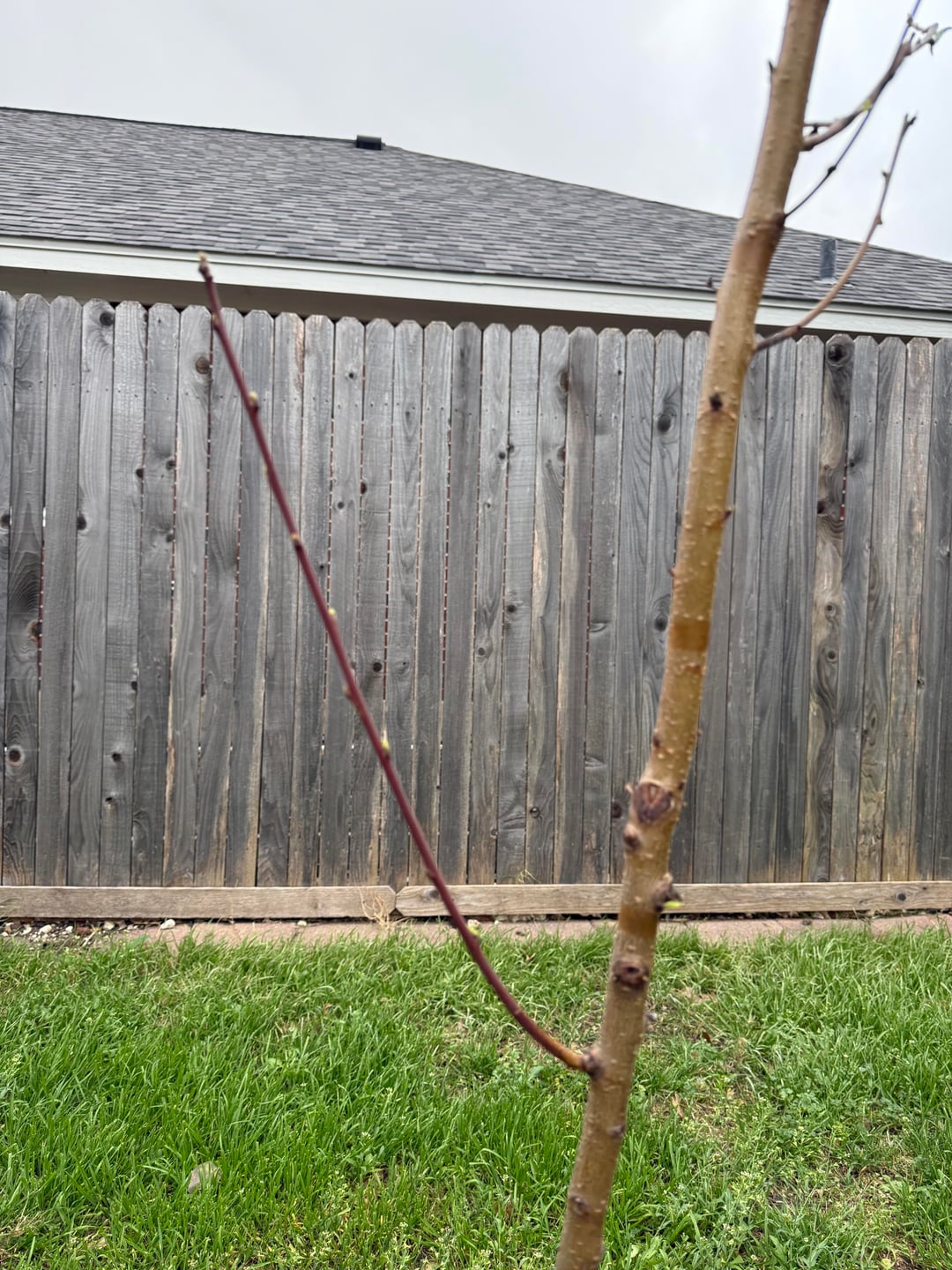 Planted my first ever tree about three weeks ago (red baron peach) and it seems happy so far. I’m concerned about this significantly lower left branch and I would appreciate any advice on trimming it and any future care tips I should consider. I plan on adding a mulch volcano soon to help keep the soil cool and retain some water but aside from that I’m a novice. Megazord the dachshund for size reference in the third pic.
