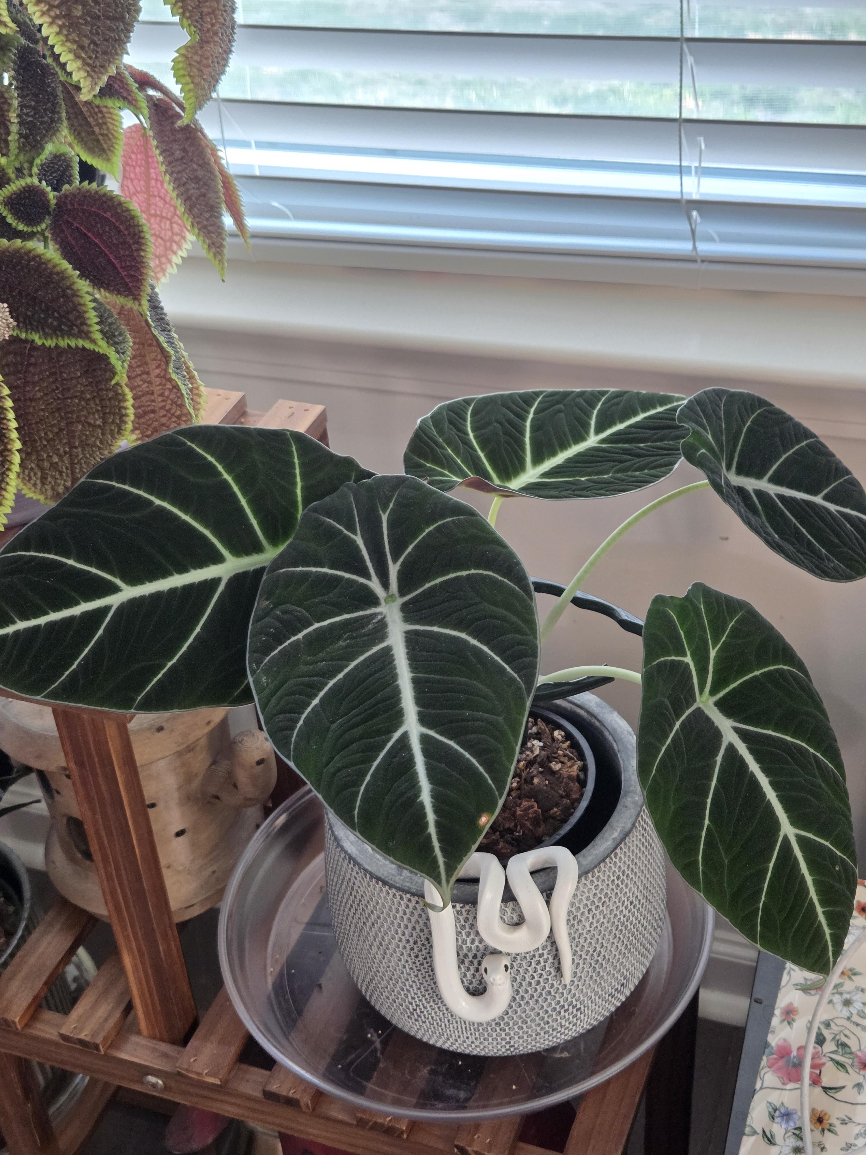 For the first time since I've owned her, my black velvet(?) didn't canabalize a leaf when she grew a new one! 5 leaves!! I feel so proud lol 🥳 by caryncaryn alocasia 1 Comment gaialight98 8 hours ago Yes, BV Also, what an adorable pot buddy!!! 🥰 🐍