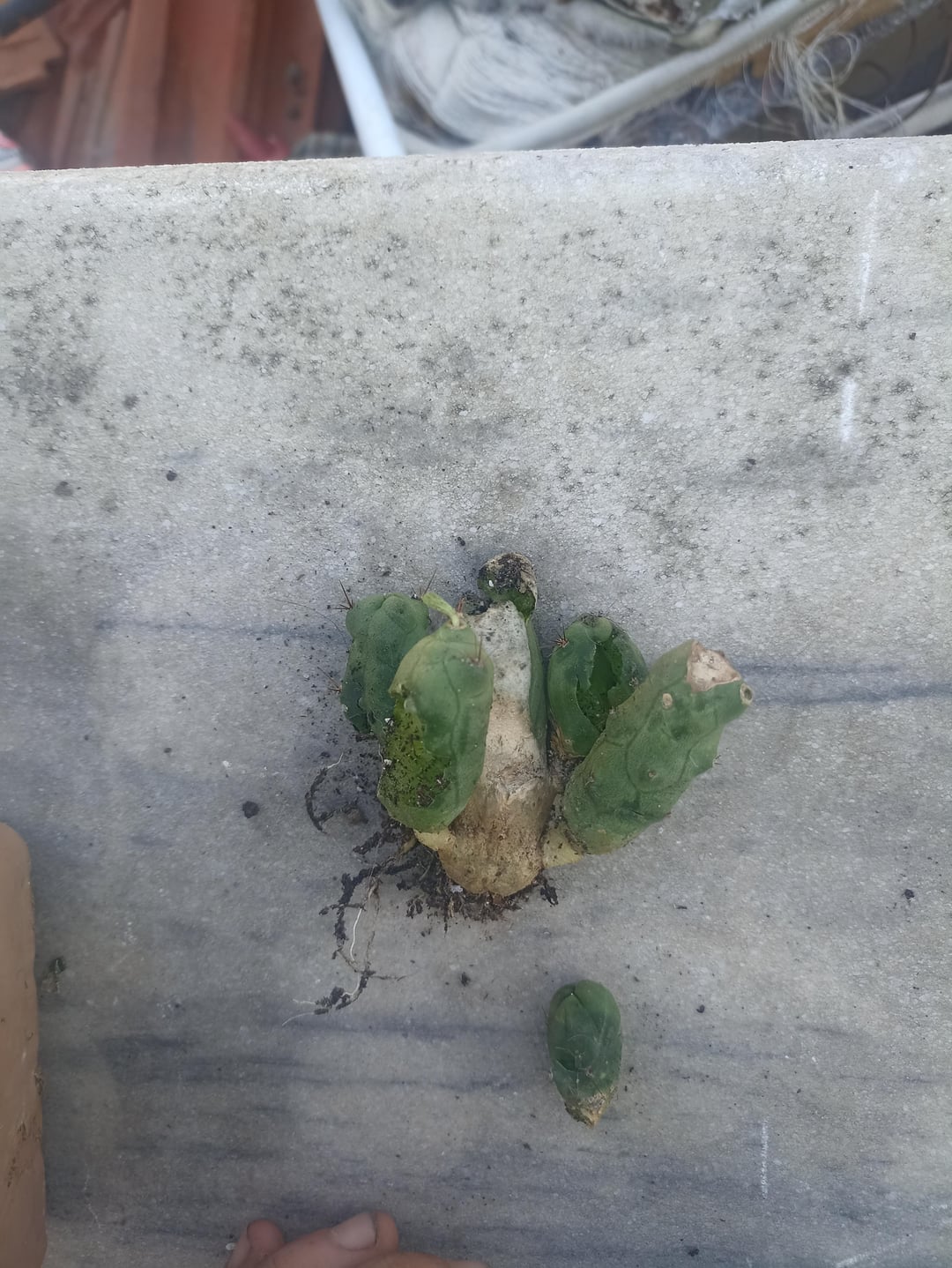 I would dust the open wounds with sulfur and plant the one with roots. You want to let the nub callous before putting in soil for it to have a shot. These dudes are pretty resilient. ✌️