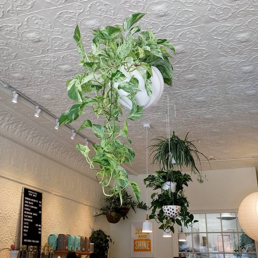 Dear @northsideespresso, we don’t mind waiting with views like this. Gotta find these @angusandceleste planters in Canada 🤔🇨🇦 #northsideespresso #kingstonontario #indoorplants #interiordesign #pothos #pothosmarblequeen