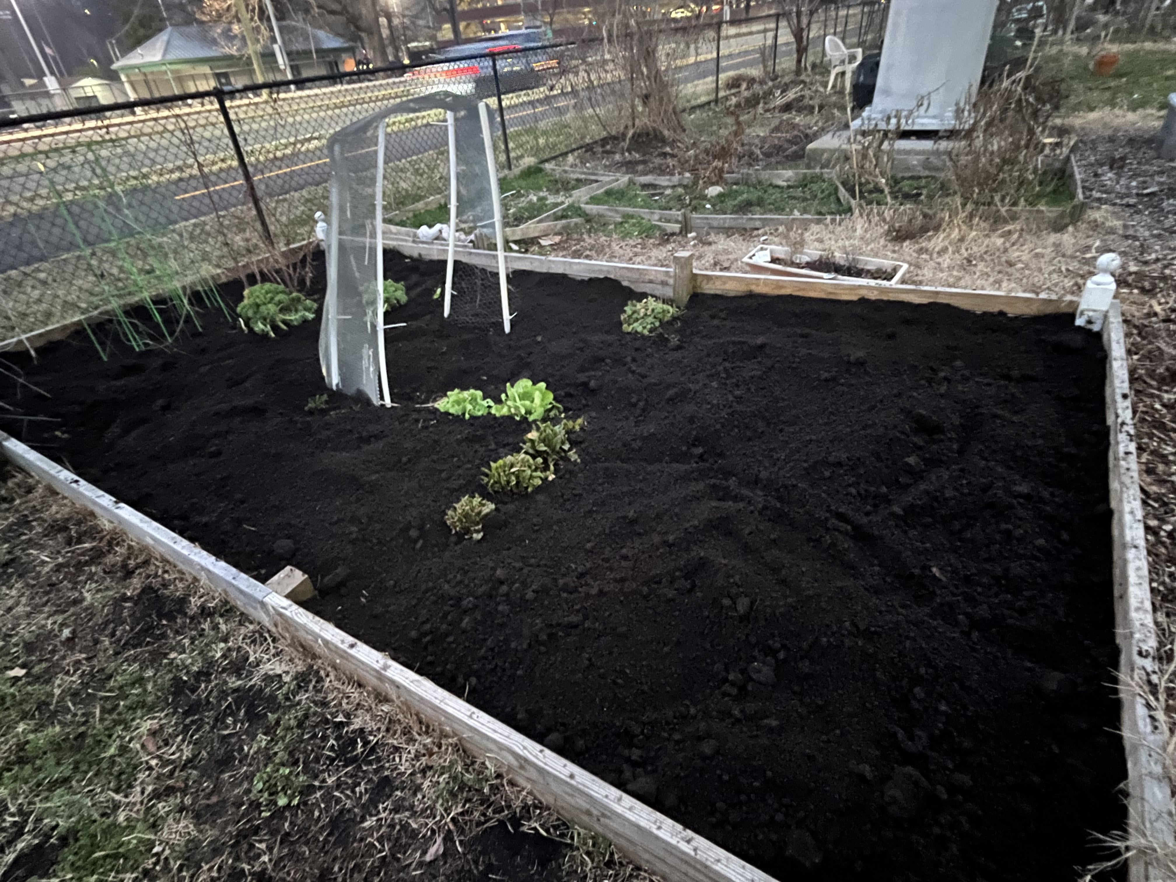 Get a bunch of raised bed or garden soil to mix in. Or you can get the compost tested to make sure it’s okay to grow in.