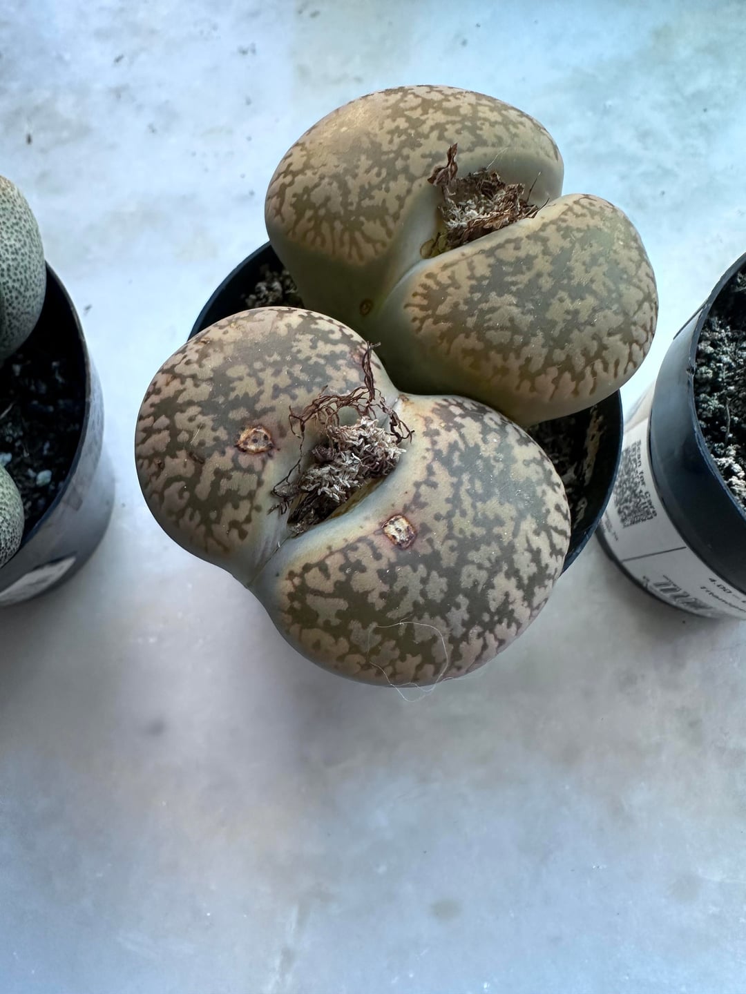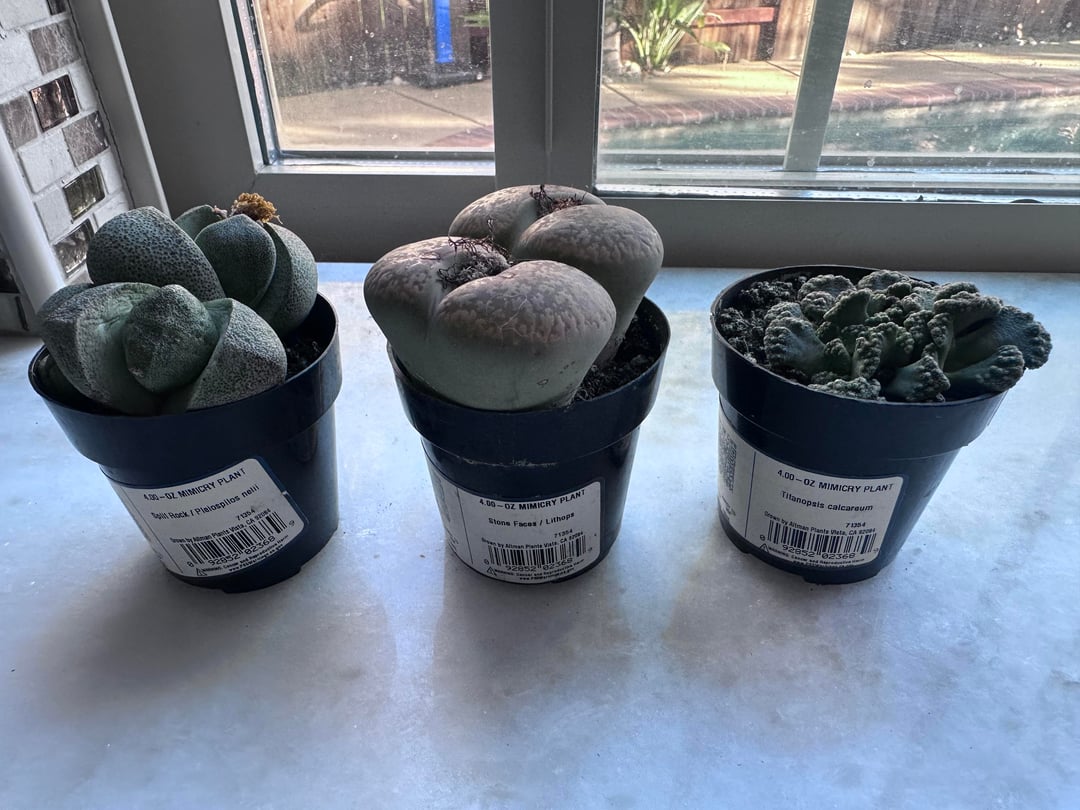 Lithops like a really inorganic mix like 80-90% grit. I put my lithops and split rocks in that. These plants have similar growing needs. Don’t water when splitting and water when wrinkled.
