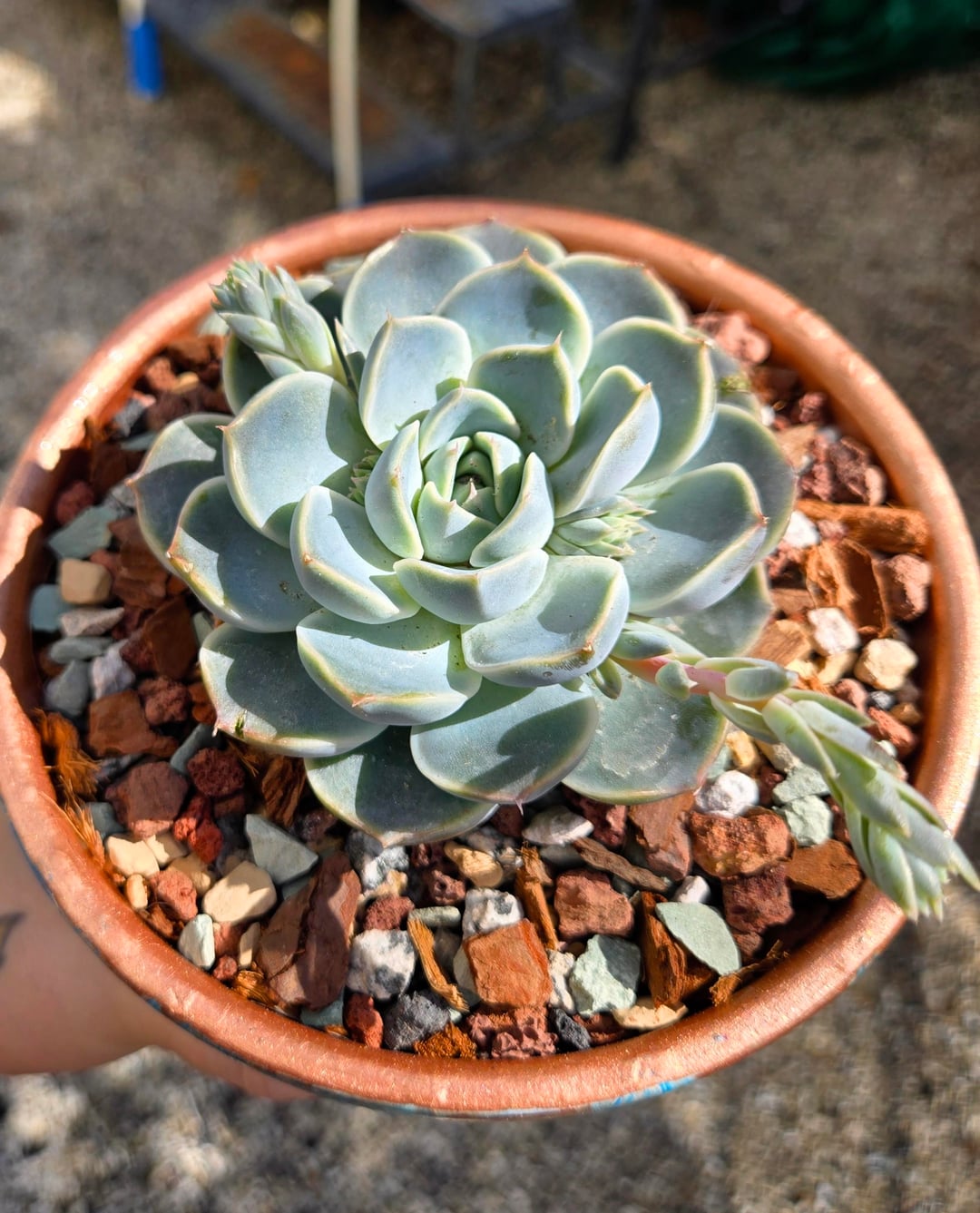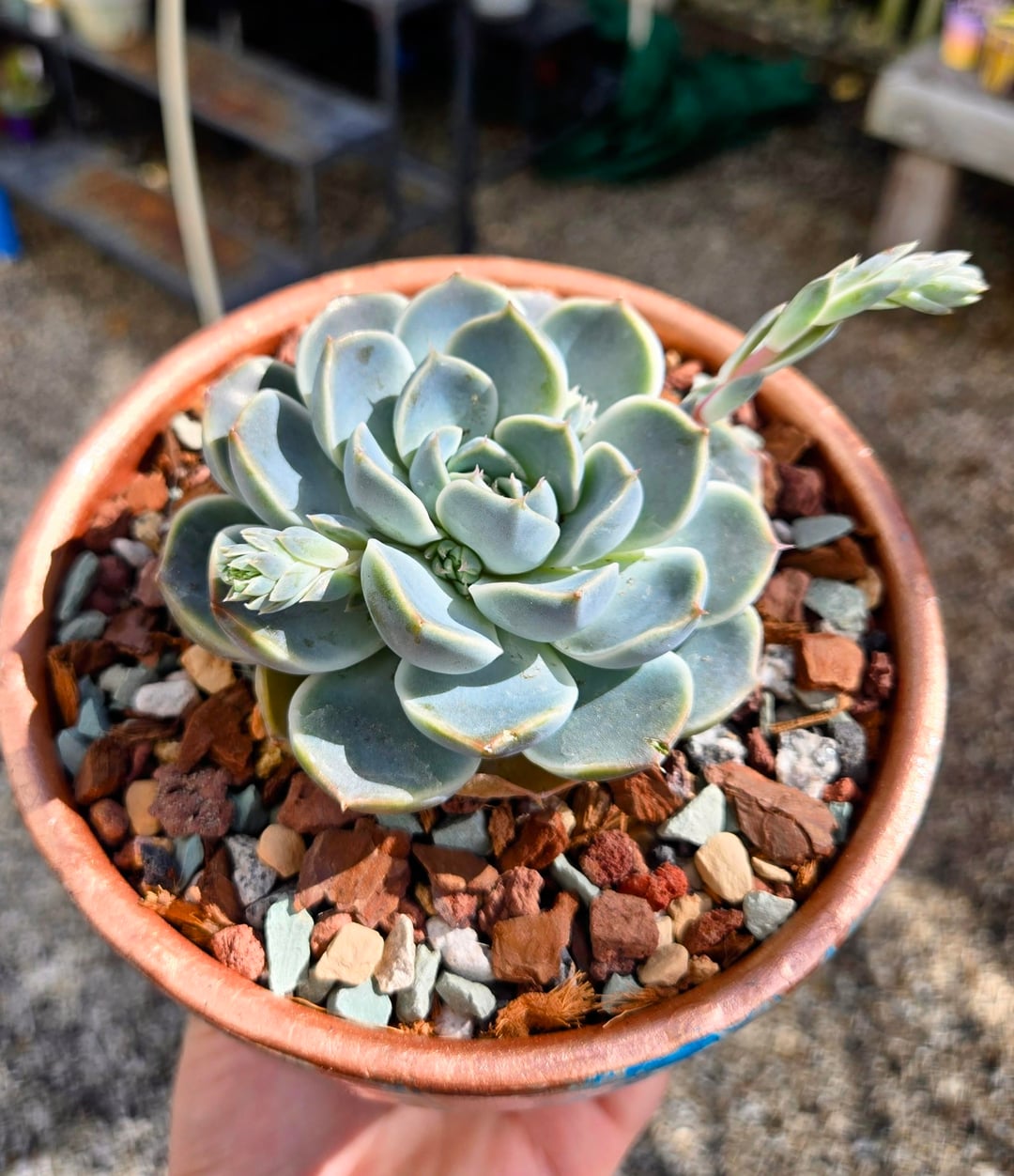 New addition, Echeveria Cielo (spanish for sky or the heavens, so fitting!) is out here trying to put out FIVE bloom stalks. Girlll. by SapphireSkie Fat Plantssucculent plantssucculents 1 Comment Lord_Popcorn 5 days ago She’s gorgeous! I love her outfit (pot) too! What kind of paint did you use for it?