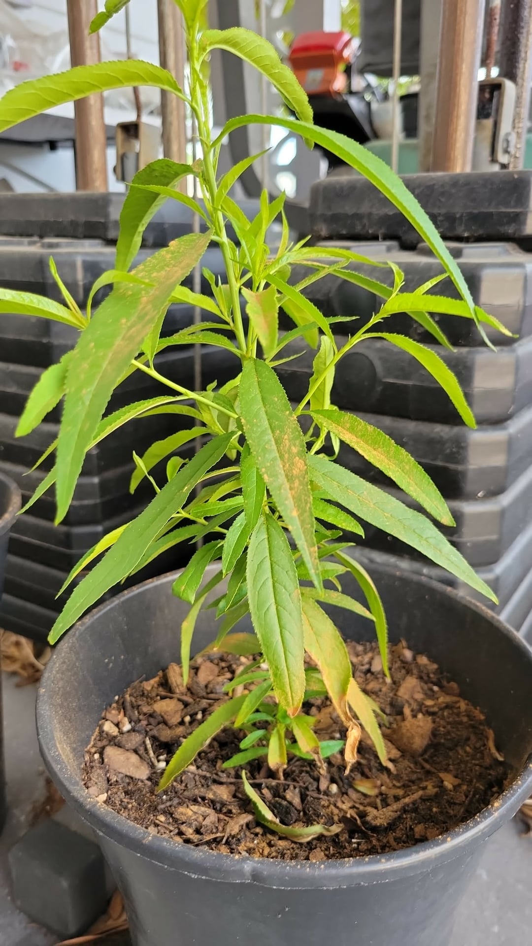 I started growing two peaches i found on the side of the road and so far they're doing incredible, but after a cold snap we had about a month ago i realized i was over watering them so i repotted them and they're doing much better,