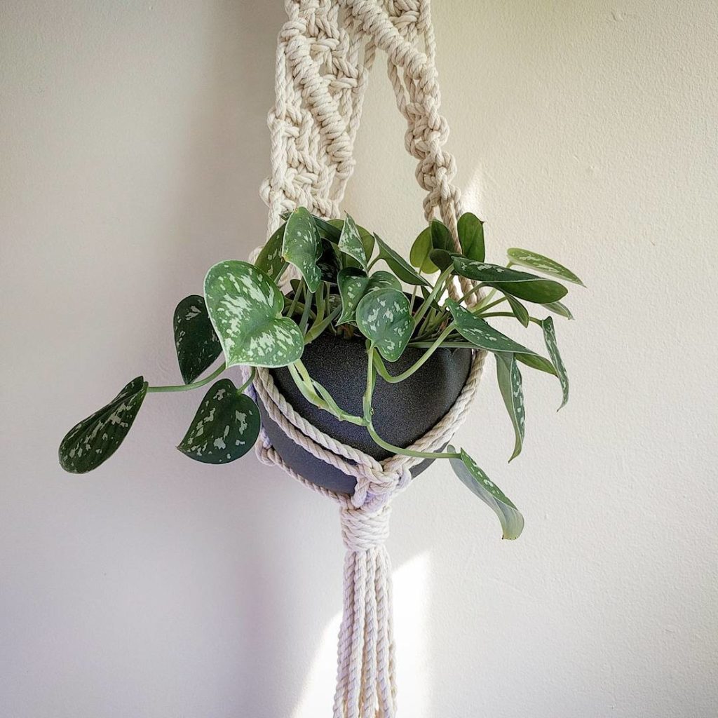 Hanging out with another one of my philodendron silver propagations #philodendron #philodendronsilver #houseplants #macrame #homestyle #houseplantjournal #urbanjunglebloggers #houseplantclub #plantstyling