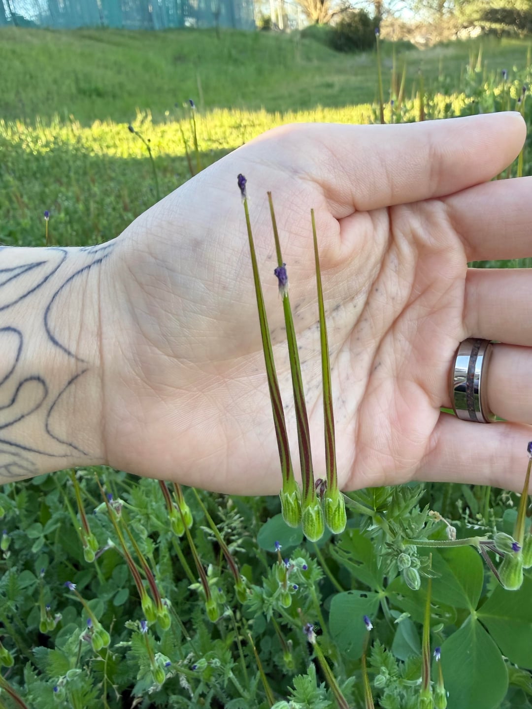 Found in my fiancés nanas backyard growing in a patch of clovers, Redding CA They’re cute and really cool!! I wanna know what they are : 3 by Money-Comment4375 plants IdentificationWhat's this plant 2 Comments jwhisen 4 days ago They are a species of *Erodium*. Wide_Breadfruit_2217 4 days ago Looks like it might be some kind of crane’s bill geranium