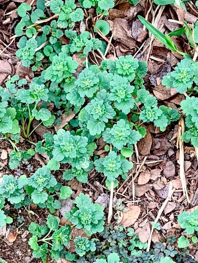 Henbit. Let it be. It blooms flowers for pollinators. Henbit’s in the mint family, and edible. Friend to chickeeed, horseherb, and wood sorrel.