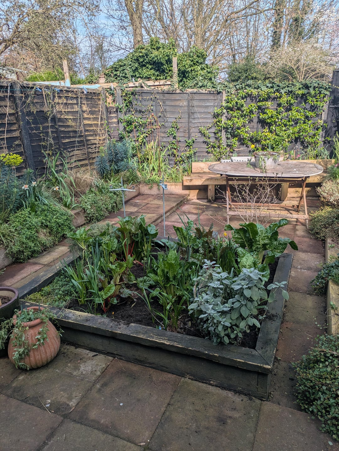 When we moved in 2 ears ago the whole garden was decking (last pic). We removed it and found these pavers underneath. We were desperate to be able to use the garden so removed some and made raised beds.