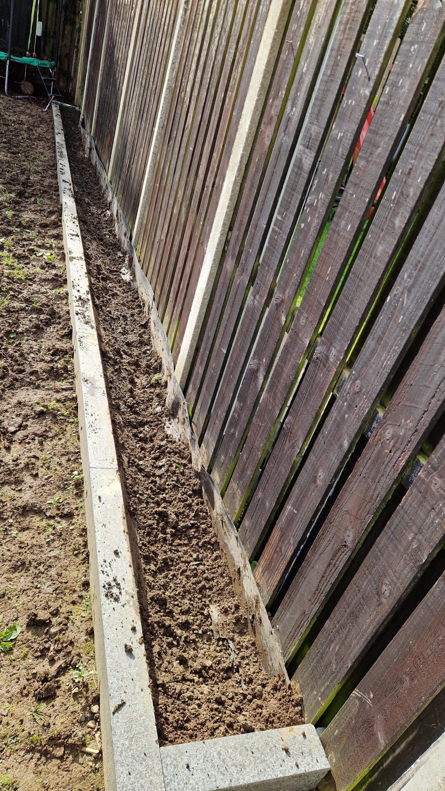 Is the 40cm including the width of the concrete kerb? Coz the soil part looks narrower me. You’re really limited with any bed less than 50cm especially with a fence on one side as the plants can only grow the other way. If it were me, I would lift those kerbs and widen it to a minimum of 50cm for lots more choice. Or, have that kerb be the back edge of the bed and create a wider bed in front of it allowing plants to fill in towards the fence. However if your goal is to contain plants within the confines of this space then plant climbers – roses, clematis, honeysuckle, passionflower, sweetpea, ivy. You will fit annual bedding flowers in between. Anything wider is going to try to crawl out of there across your lawn.