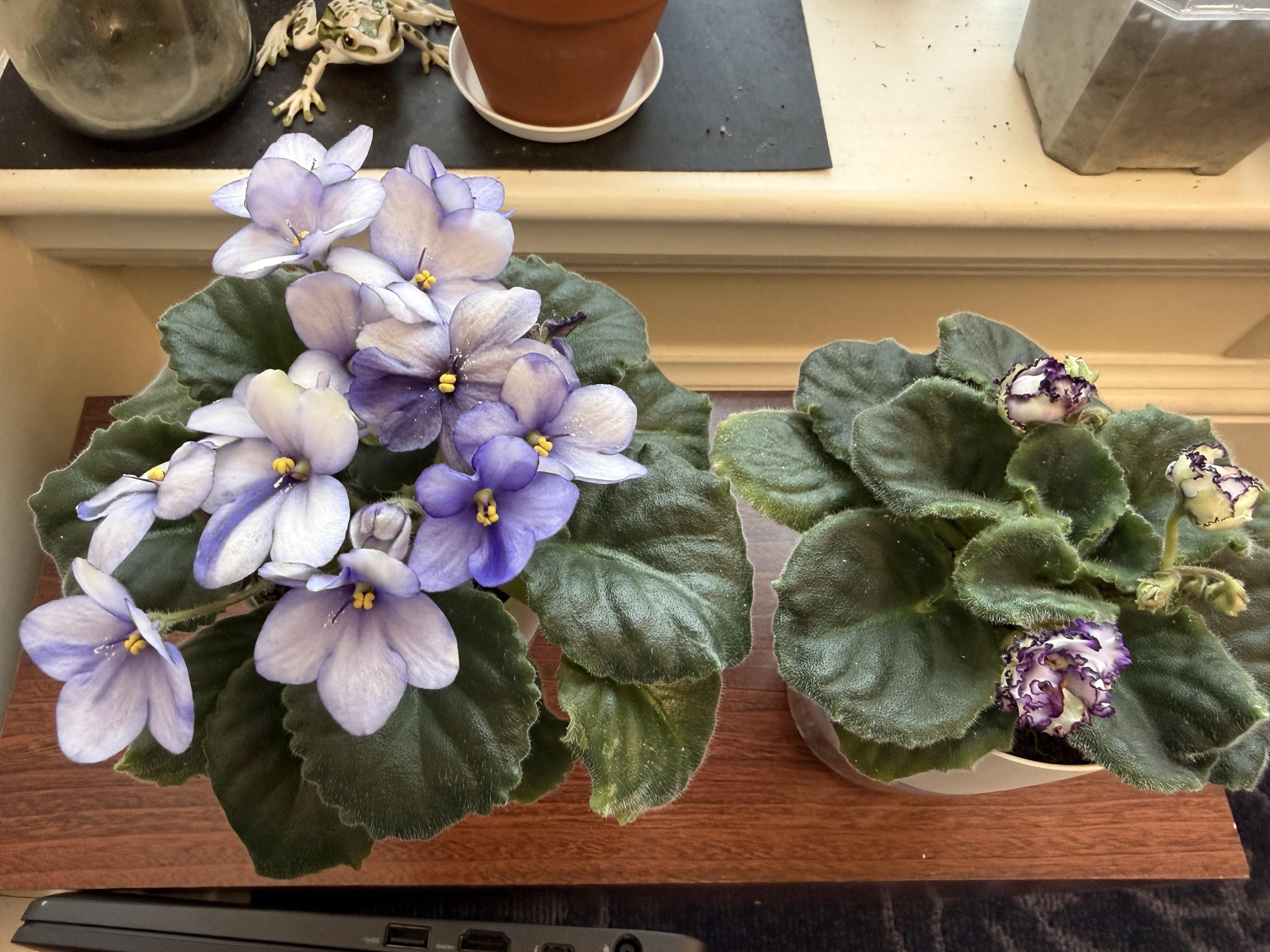 I pollinated some of my violets last year and started the seeds! This experiment created these two and they are now blooming. I love the mystery of making a new variety!