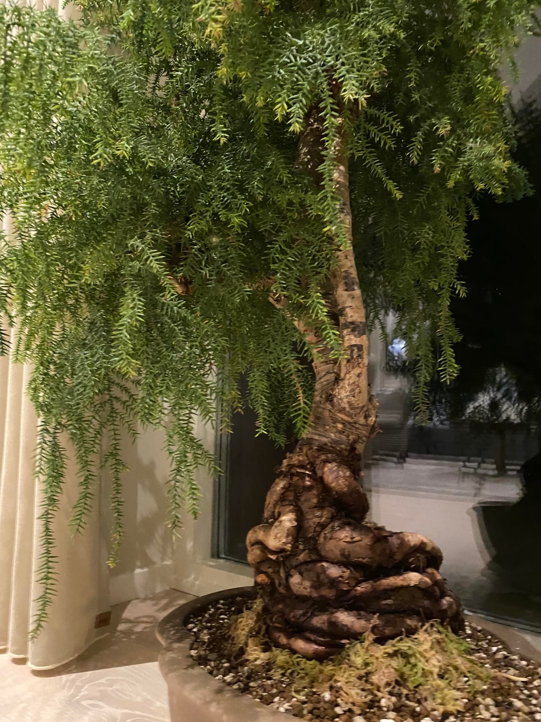 I just repotted this aracucia heterophylla in its first bonsai pot. Does anyone with experience with this species have any tips? I bought this tree at a nursery last year. I first saw the tree two years ago, but it was far too expensive so I didnt purchase it. I came back a year later and it was half price. I have since shortened the trunk by a meter, and new young growth has emerged from the cut site. I have also lowered the soil line by 7cm to expose the gnarly roots. Other than that I have not pruned any foliage but I am waiting until next year as they do not like root disturbance and i want it to recover nicely before more stress is induced. What do you think?