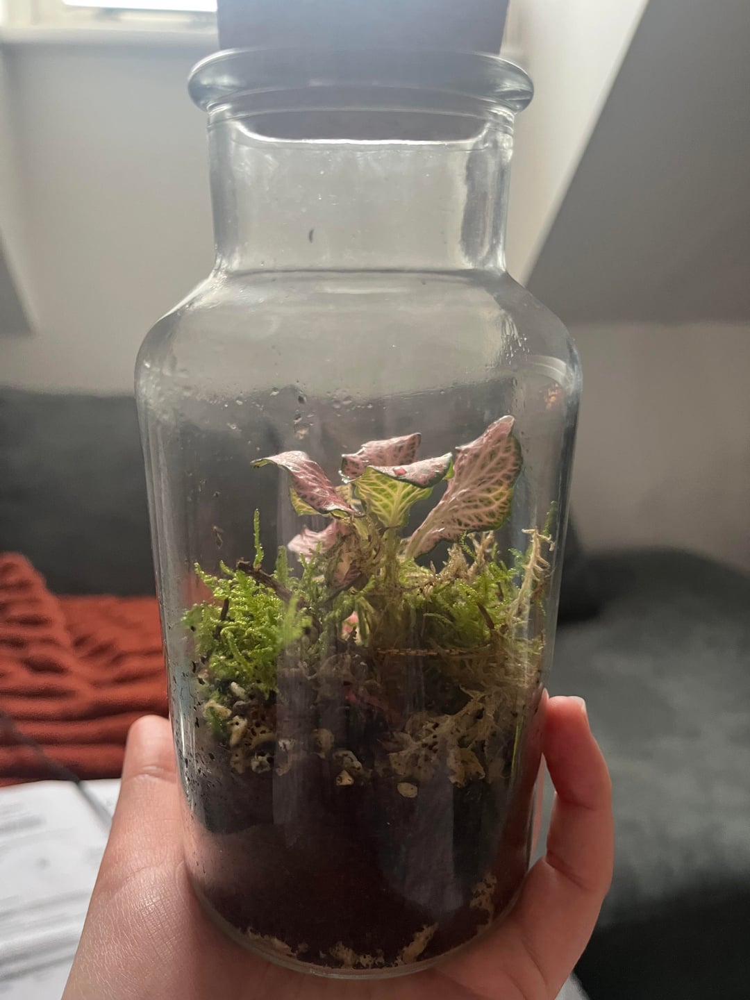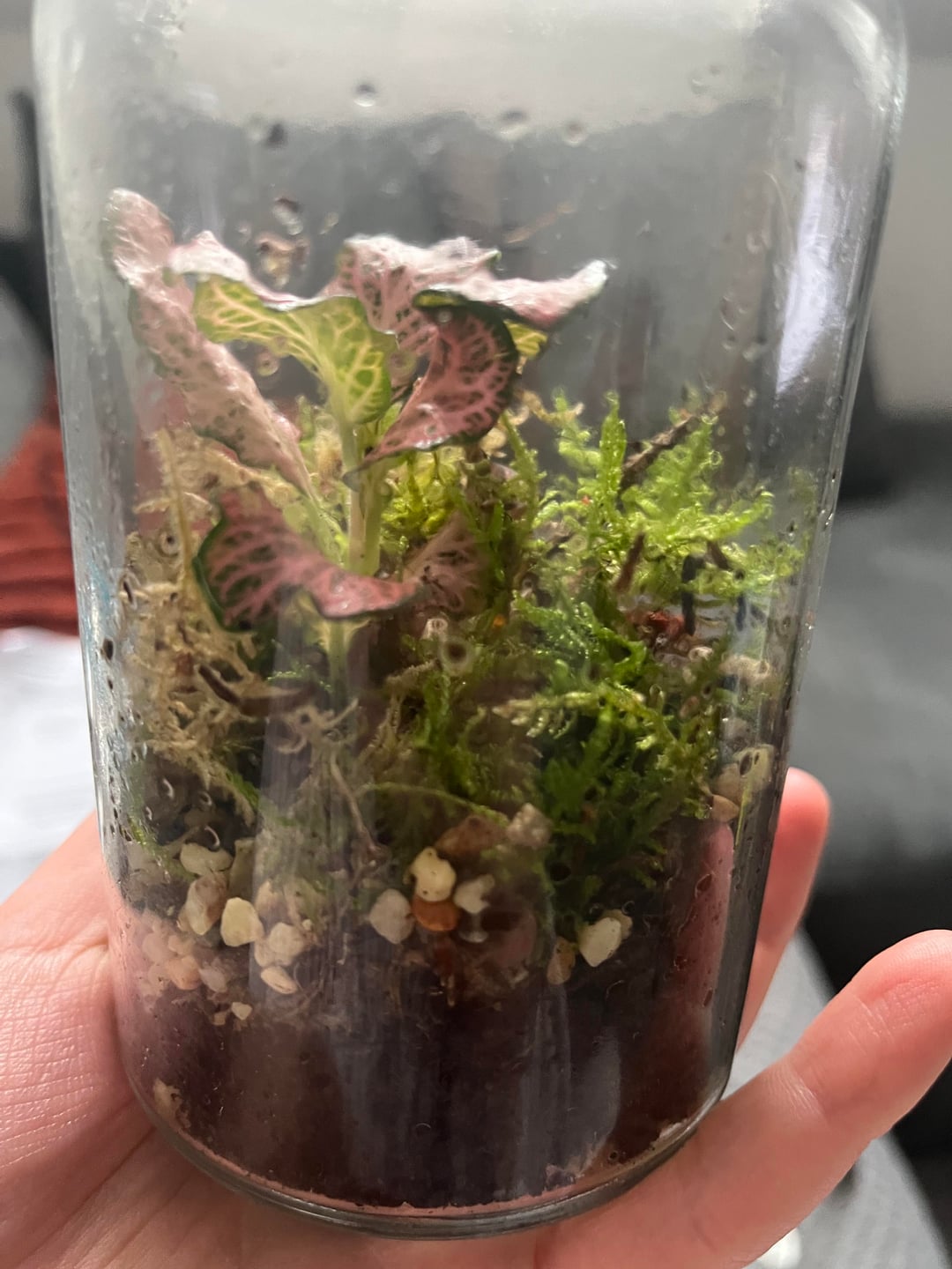 Hi, I have just brought my first ever terrarium (I know it’s teeny) and know very little about them but I’m excited to learn! Is there any tips and tricks I should know about? Is my set up looking healthy and thriving? How could it improve?