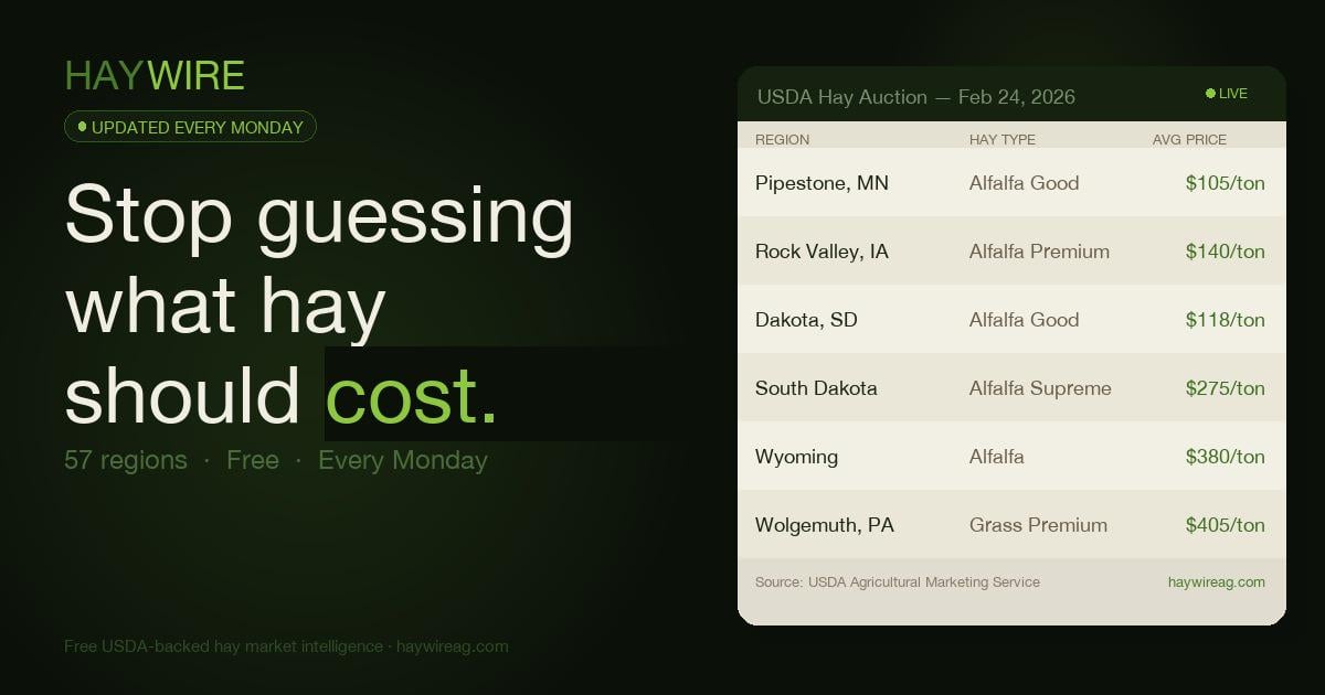een tracking hay auction prices across 57+ USDA markets every Monday and figured this community might find it useful.