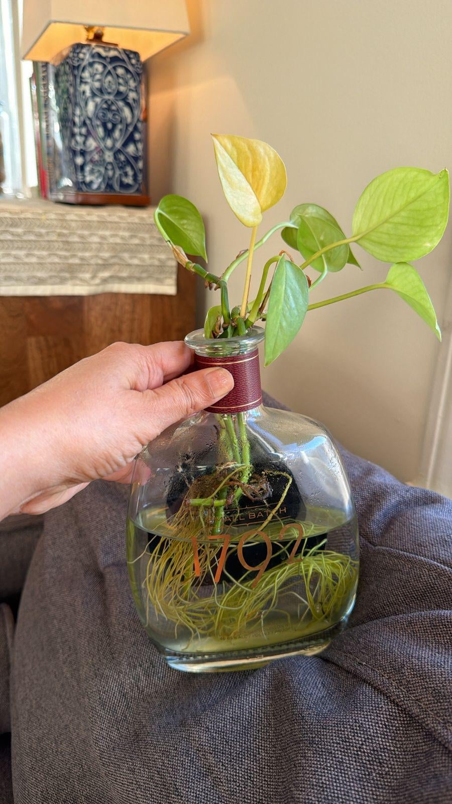 Hi y’all, here’s a photo of my mom’s pothos in water. Its leaves are yellowing and falling off. What’s wrong? What should she do? by balconyswing Proplifting 2 Comments Dear_Mess_1617 4 weeks ago Is she changing the water weekly ? itsgillythekid 4 weeks ago The roots look to be in good shape. Have you been adding fertilizer? The leaves look very pale which tells me she’s underfed. If you plan to pot into soil she’s more than ready.