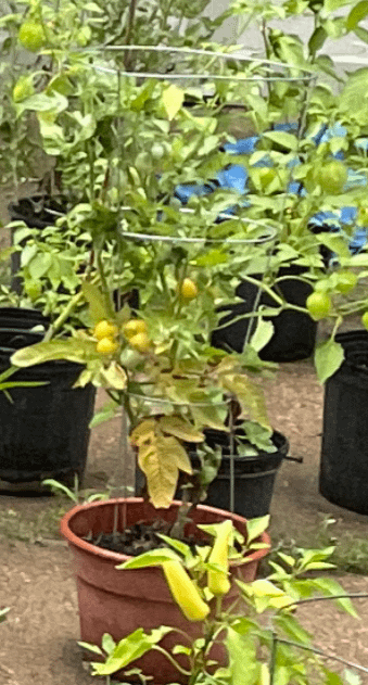 Last year was my first time growing tomatoes and I got a wide variety of plants from several different spots to try and figure out what I enjoyed growing. Unfortunately, that means that I lost track of what some of them were, including my favorite (badly pictured, but the only one I could find). It grew well in a container (United States, zone 6a) and had fruit that would start green and ripen to a lovely golden yellow. Mature fruit was slightly smaller than a plum and more oval-shaped than round. I'm hoping to grow it again this year and would appreciate any pointers in the right direction. Thanks so much!