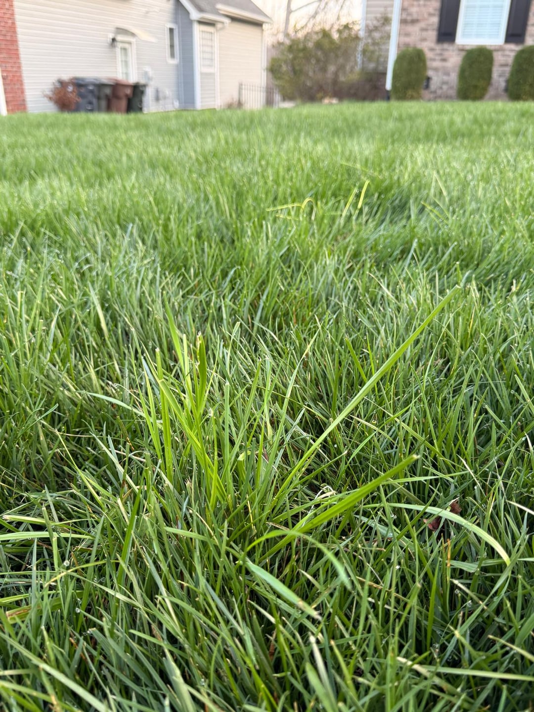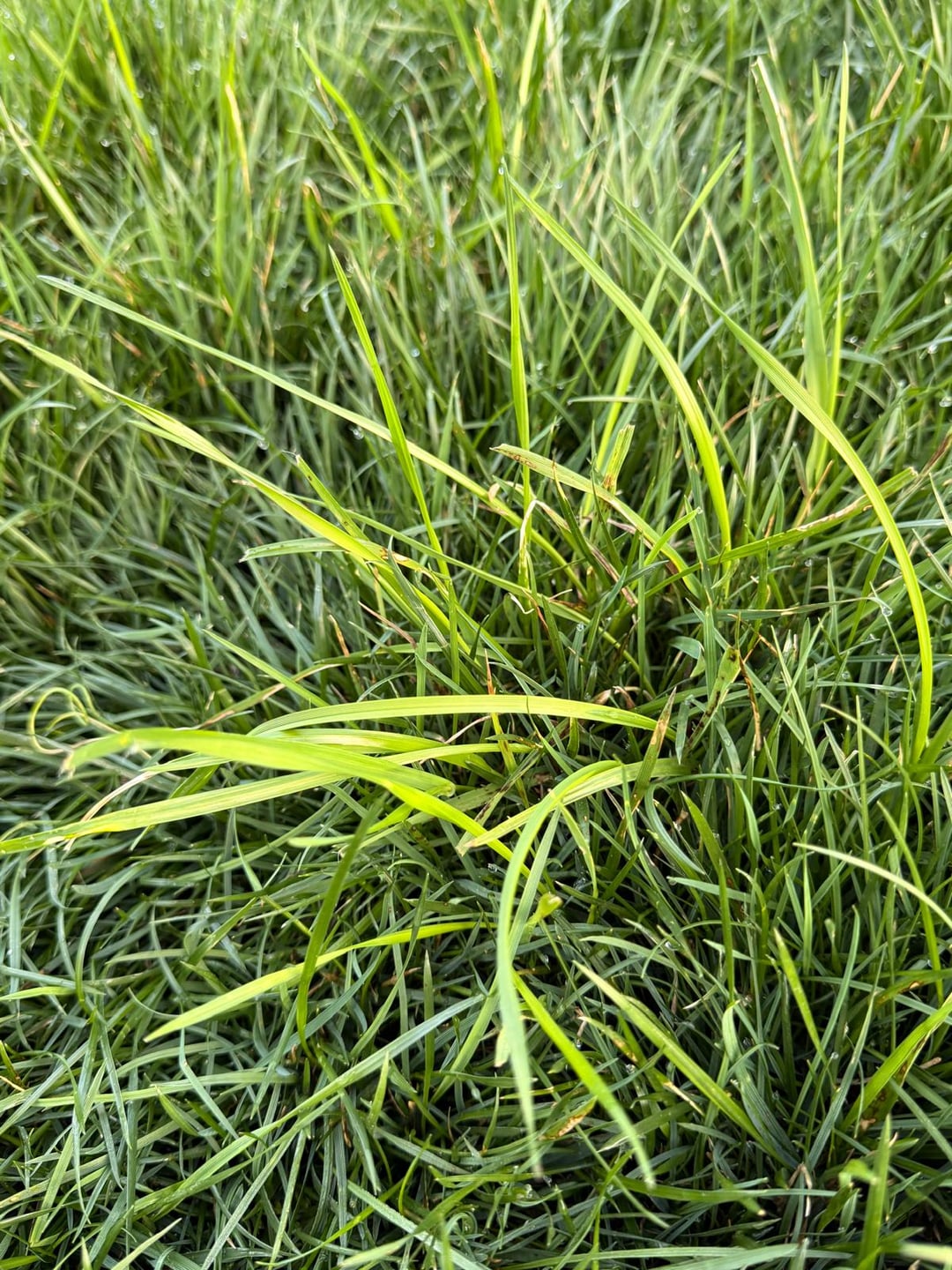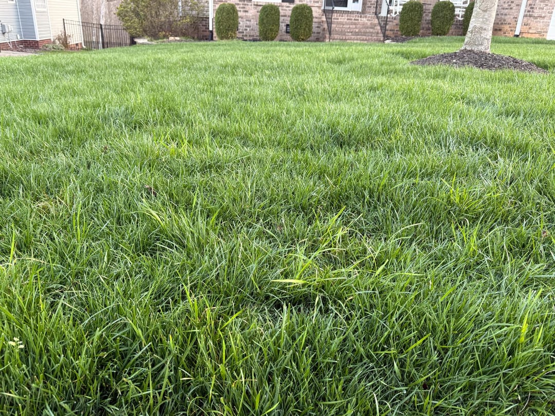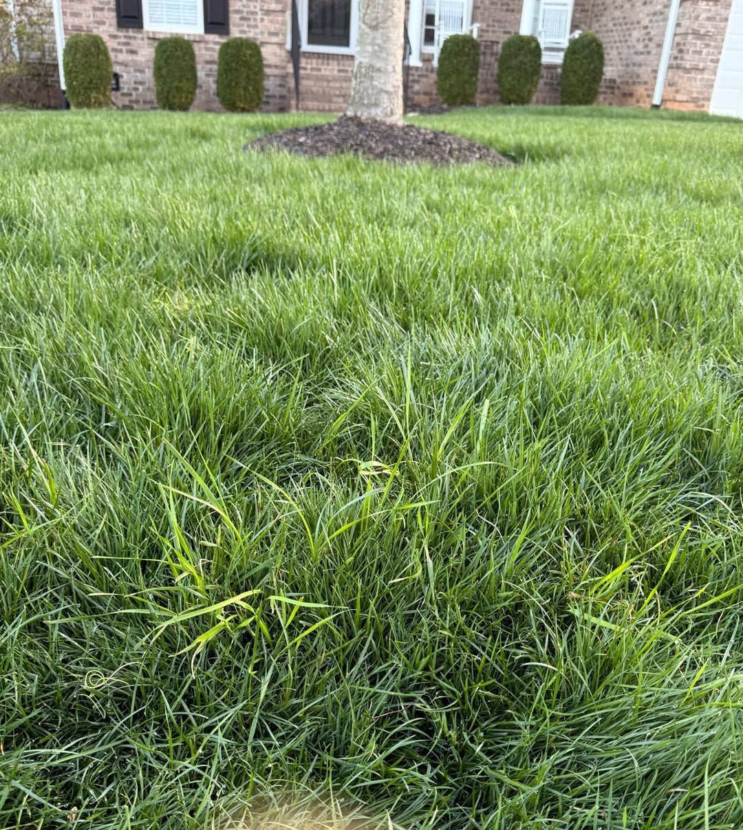 Tall fesue lawn, Greensboro North Carolina, zone 8a. This weed looks like grass, but it is taller, and the blades are a little broader than fescue. My lawn guy applied pre emergent last week, I don't know what product he uses, the wild onion/garlic, ground ivy are dead/dying. But this weed looks like it is the least bit affected.
