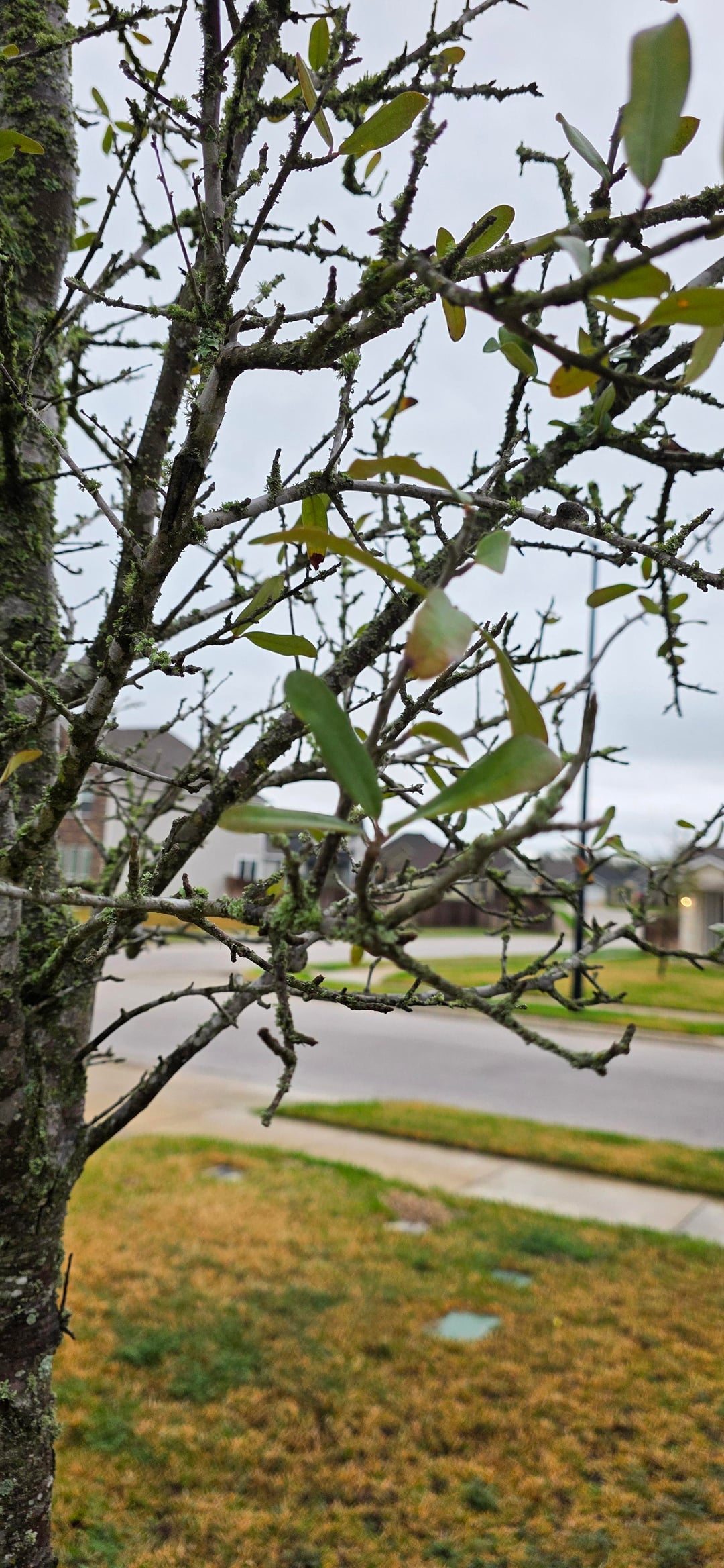2) All live oaks look like shit this time of year. Despite them being “evergreen,” they do shed their leaves every spring and grow new ones. Young trees like this have fewer leaves than mature live oaks, and so can look more concerning.