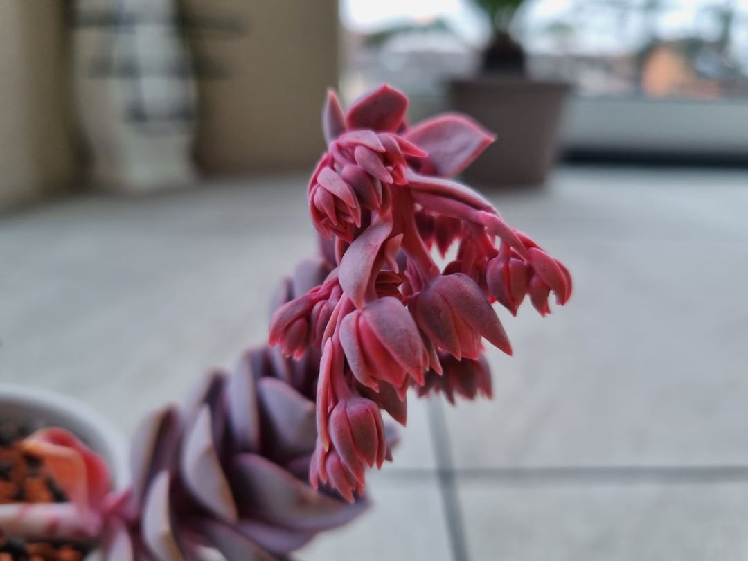 Concurring with everyone else – !itsaflower and it’s definitely not etiolated. This is a great example of a happy and compact echeveria! Curious, is this an outdoor plant or indoor?