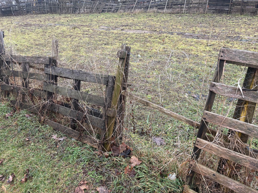 Attached are current photos. The fence right now is held it place by metal stakes and skinny wood posts, wrapped in chicken wire on the inside of the garden, and has an assortment of pallets in the outside.