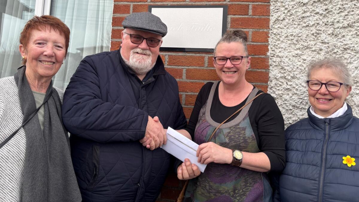 Mullingar Gardening Club donation to TEAM Mullingar; Ann Russell, Danny Dunne (chairperson), Mary Kennedy (TEAM) and Bernadette Cleary.