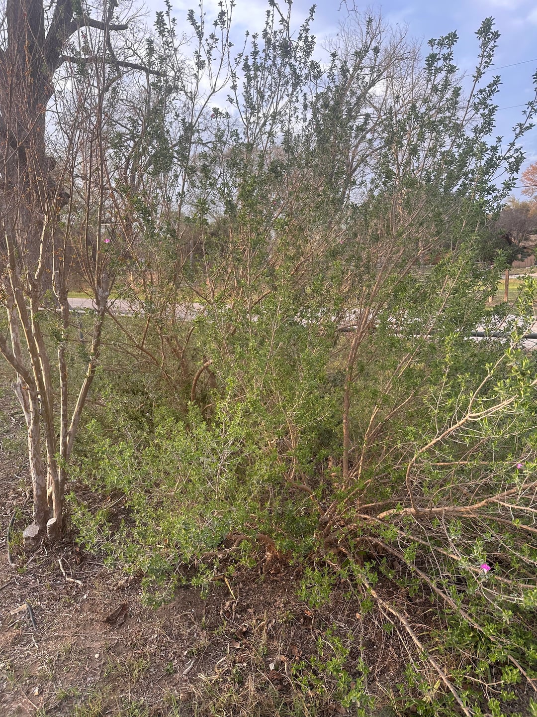 It's very hard to see in the photos, sorry about that. We have some Texas Sage that got cleared by leaf cutter ants during the winter. Leaves are growing back nicely. I've been wanting to prune it to bush size, can I do that now? It's as tall as the crepe myrtle and I'd like it to be half as tall, if that's doable. Thanks!