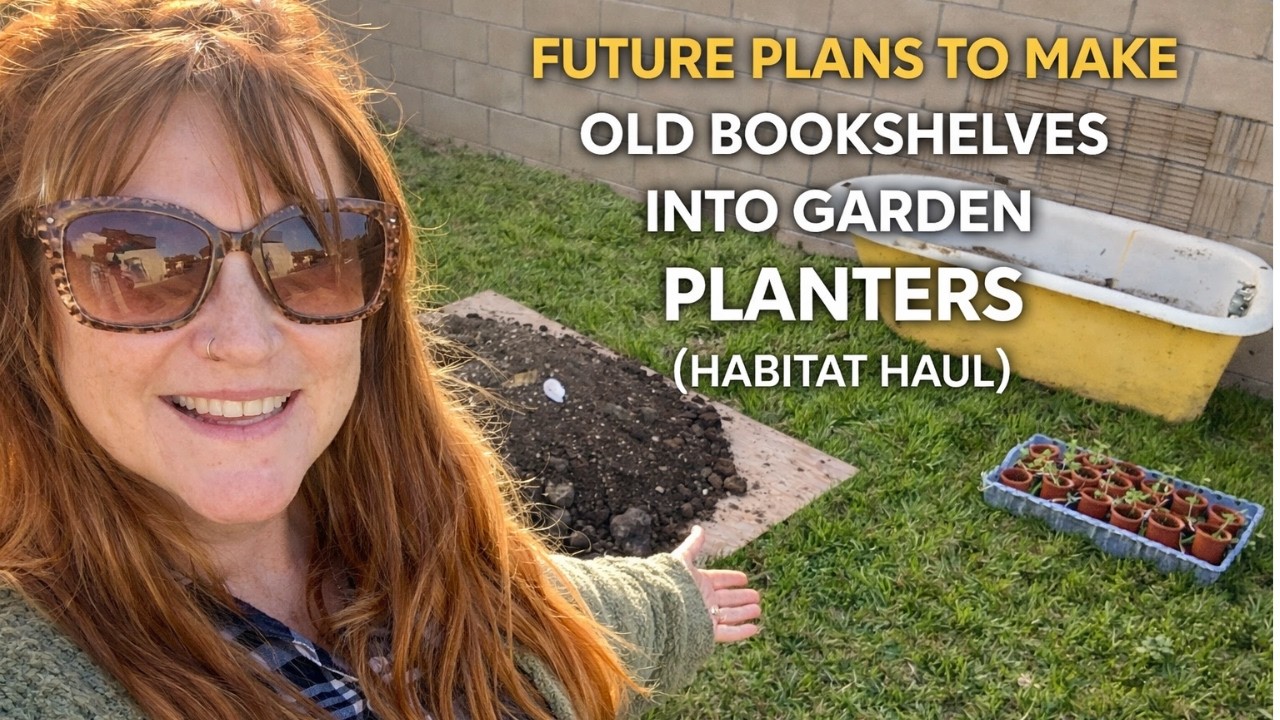 In today’s wacky, wonderful Wednesday video, I share how I repurposed two thrifted bookshelves into garden vessels for just $15 — cheaper than building from scratch! I found them at Habitat for Humanity and I’m painting them sage green for my garden.