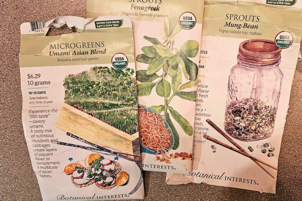 Packets of seeds suitable for sprouting.