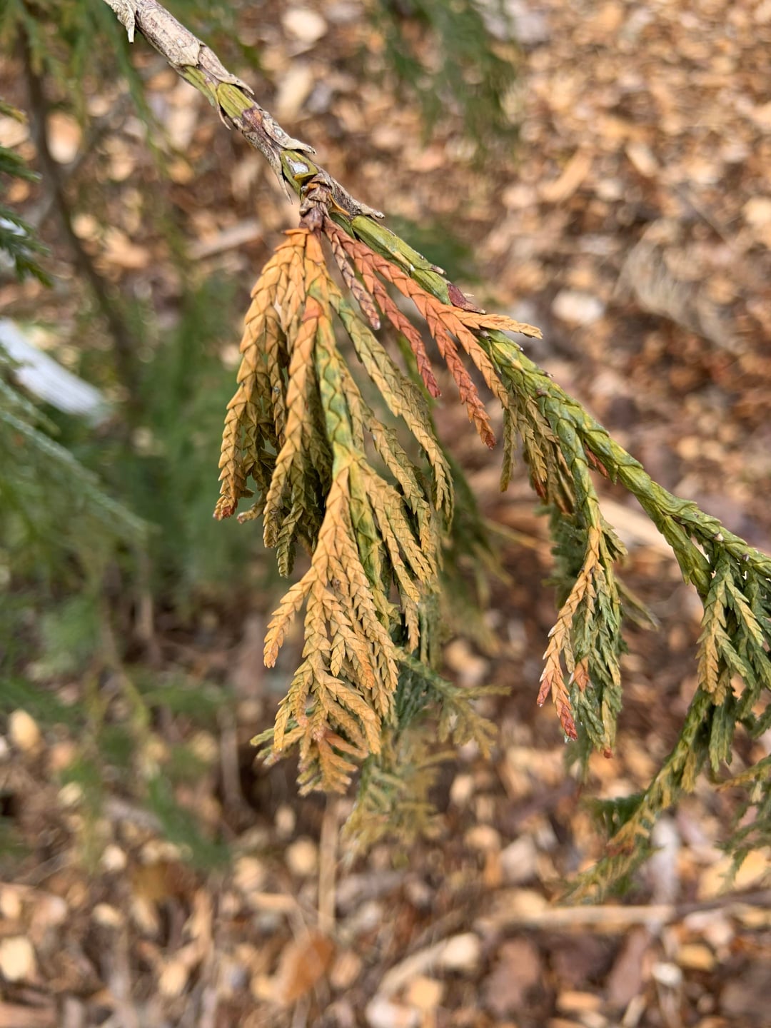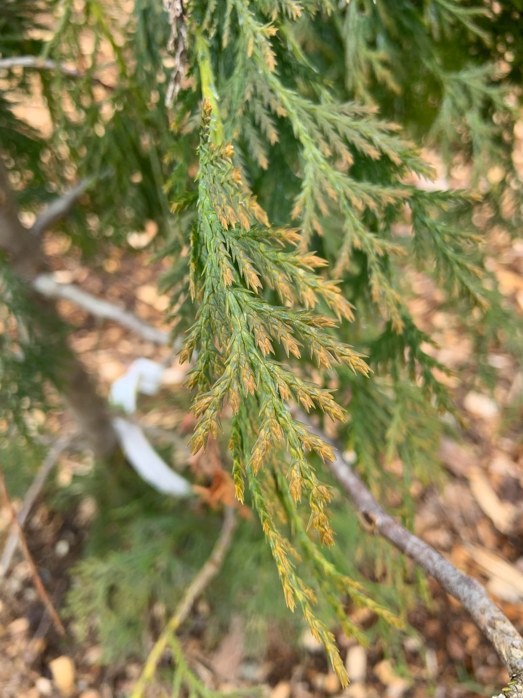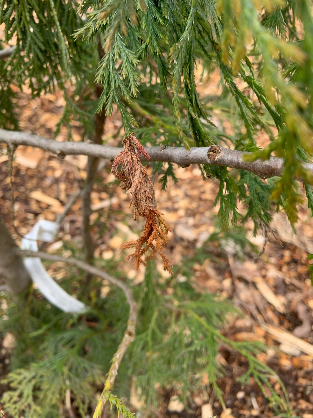 We planted this Alaskan Yellow Cedar last summer and I’ve noticed some of the leaves are starting to brown. Is this typical within a few months of planting or is this something I should be worried about? I’ve also noticed some white spots on some of the leaves (second to last photo), but it doesn’t look like blight based on the photos I’ve seen online.