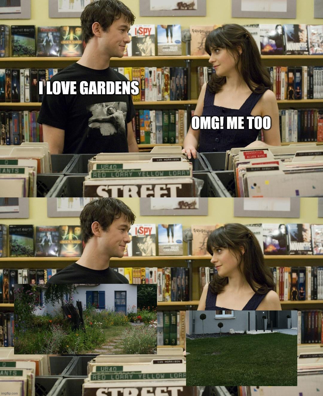 I’d rather have the grass on the right than all those weeds making my house look abandoned on the left.