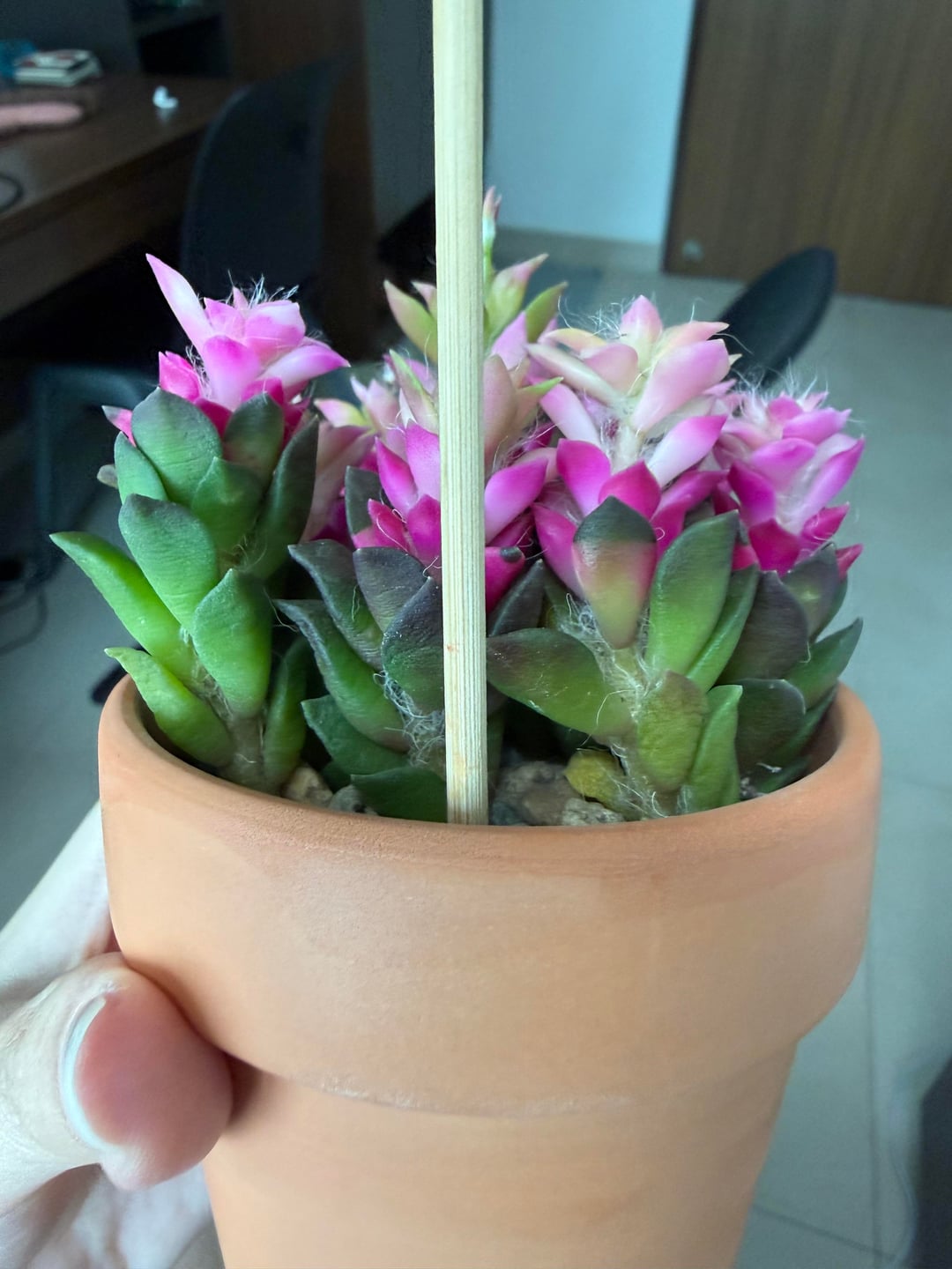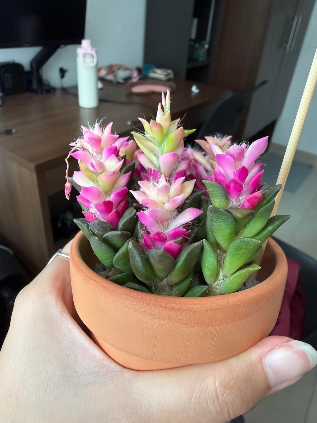 I've posted about this issue where my anacampseros had remained dehydrated and wrinkly a few days after bottom watering it so I took the advice some of the commenters gave me and repotted it into cactus soil containing both grit and organic soil (originally it was in pure grit), waited a week and bottom watered it for around an hour. Its been almost 2 days since watering it, and the leaves are just as wrinkly and the soil seems dry (I used the skewer test method). I'm not sure what I'm doing wrong, should I water it again? I really hope to see it flower π·