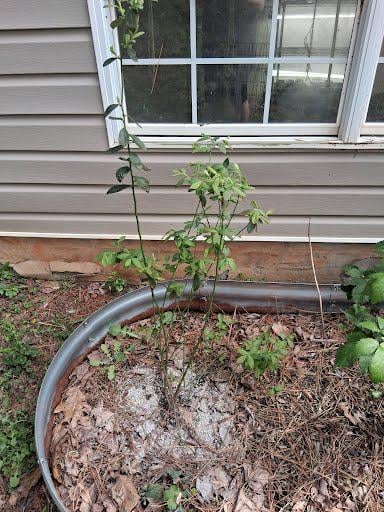 I bought this blueberry plant 3 years ago and planted it in this raised bed. It has never bloomed. I think the soil might be the problem as the bed is full of compost. I have added soil acidifier every year. Fertilized it. It gets new growth each year. It is a fancy self pollinating variety.