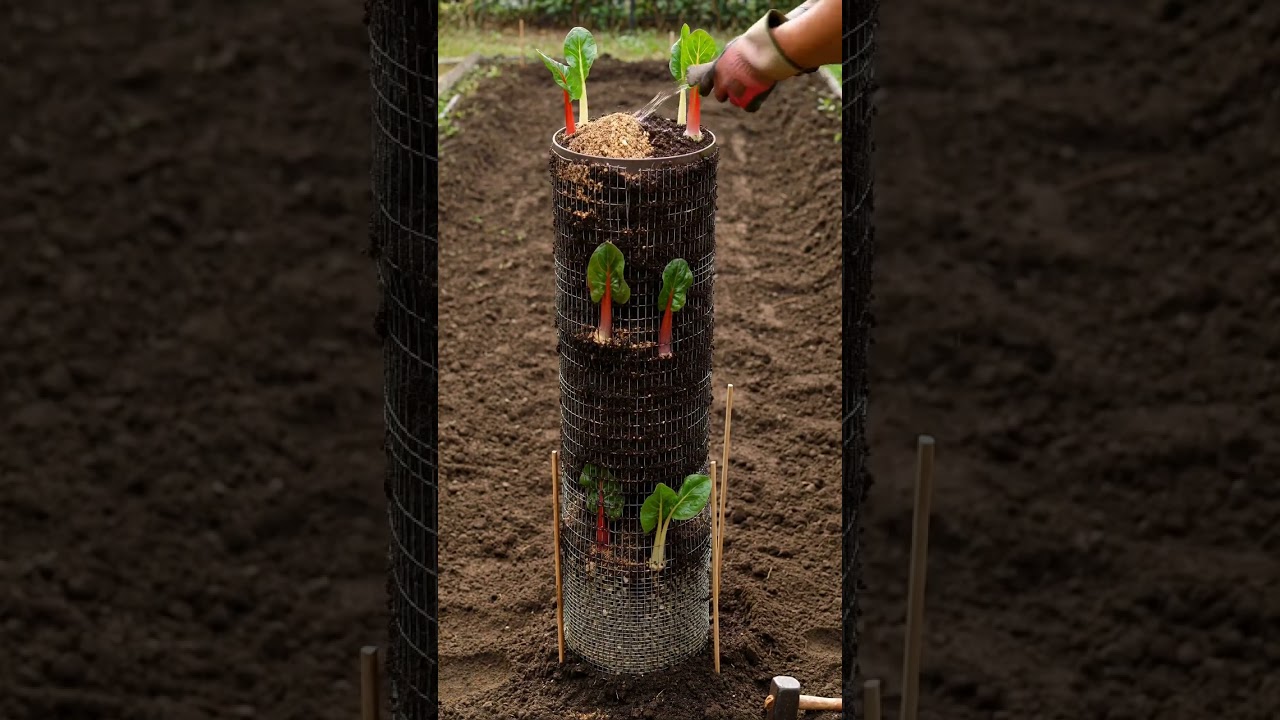 rainbow stem chard tower, rainbow chard timelapse, colorful vegetable tower, swiss chard tower, vertical chard garden, multicolor stems, edible garden build, vertical vegetable garden, unusual gardening, colorful garden idea, stem color reveal, satisfying growth video, backyard food garden, vertical garden timelapse, oddly satisfying, ai generated, ai video, viral shorts, trending shorts