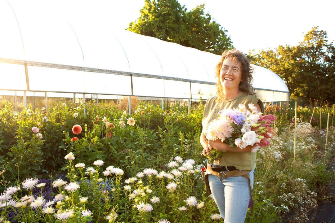 At Hoverfly, Sarah Fry runs a spring flower share and U-pick dahlias in August.