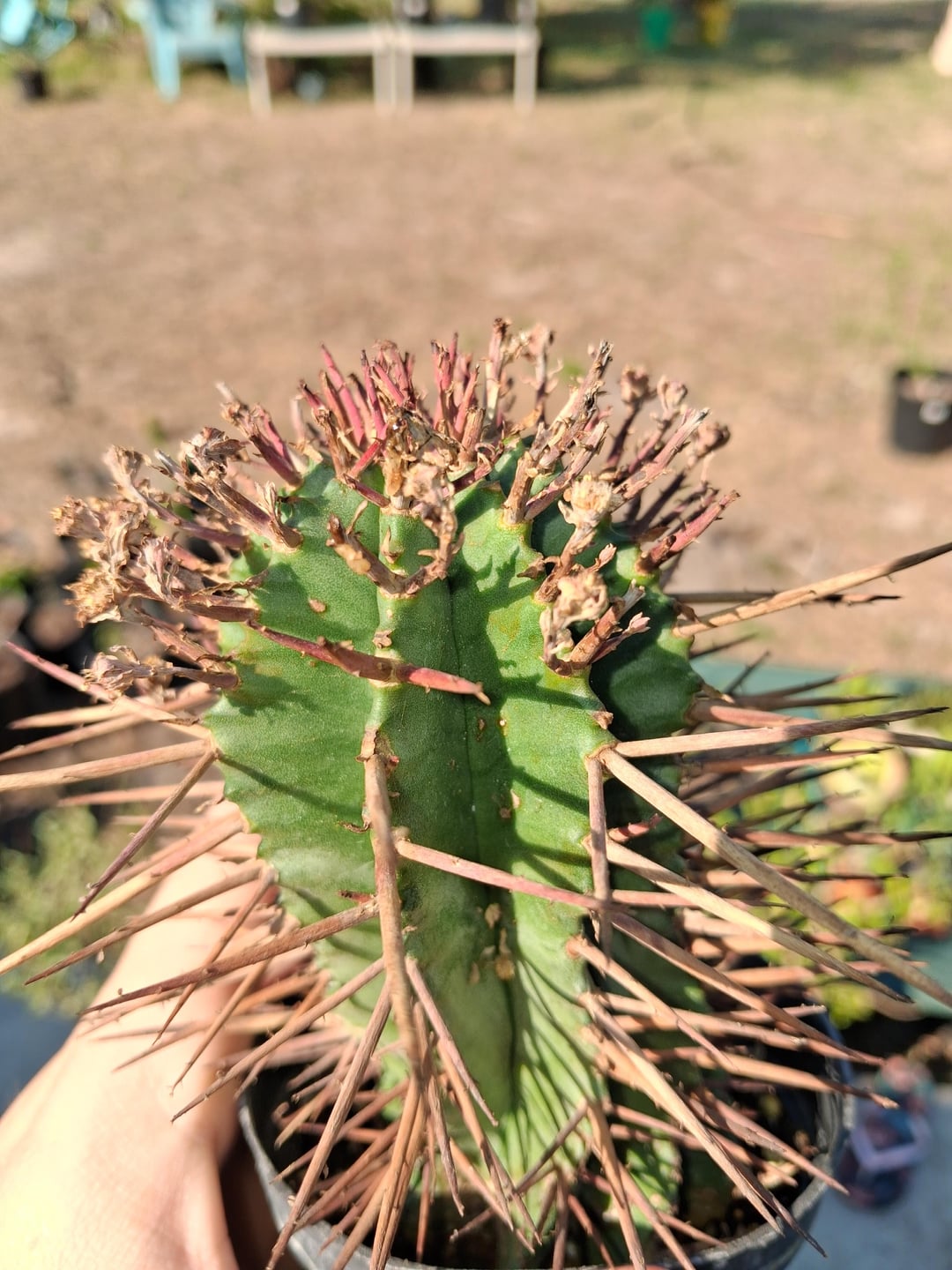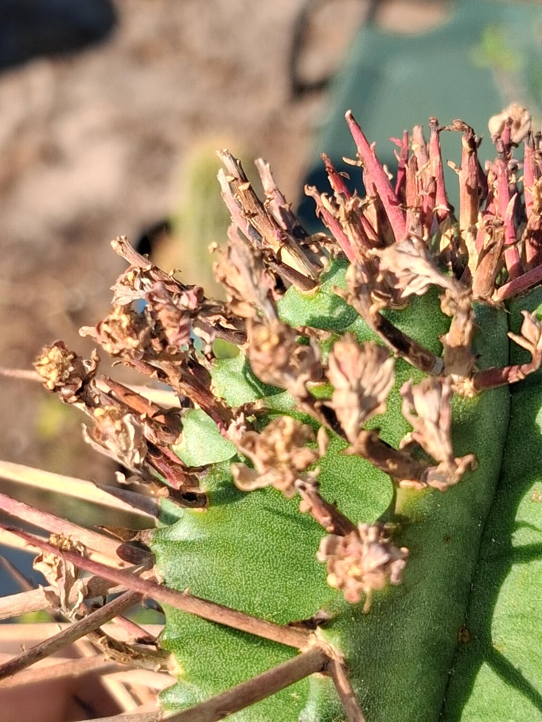 Euphorbia horrida var noorseveldensis. This is an Altman clone that’s Male.