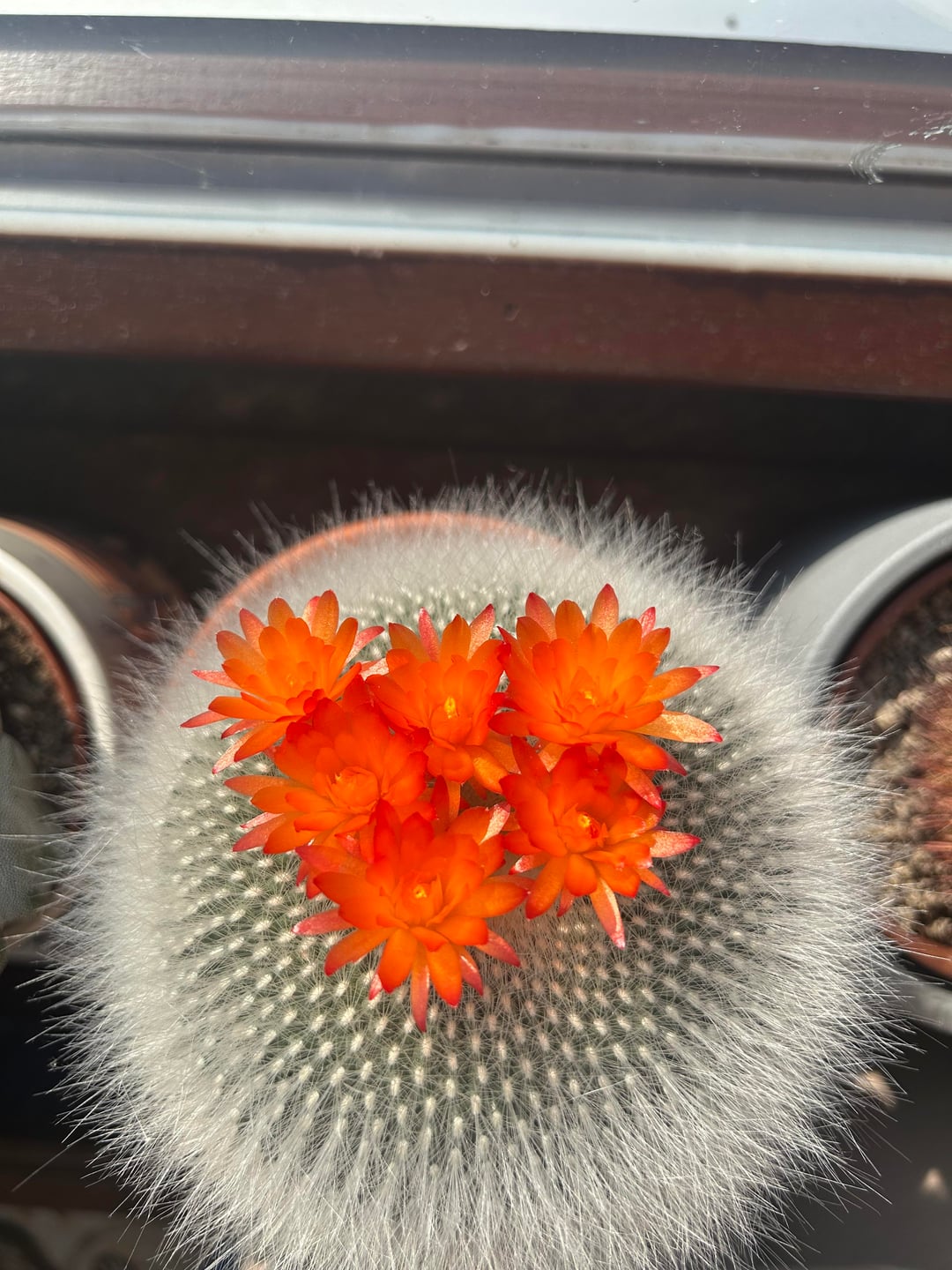The first picture is Notocactus (Parodia) haselbergii, my favorite cactus in my collection. I got it for 3 Euro in Aldi together with a pot when it was a little baby, and now it turned into an absolute unit. It is incredibly reliable and forgiving, it survived all my rookie mistakes, and its flowers stay in bloom for around two weeks!