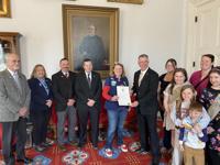 Following the presentation in the House Chamber, the scouts and their families met with Gov. Phil Scott in the Ceremonial Office, where they received a copy of the resolution and posed for photos.