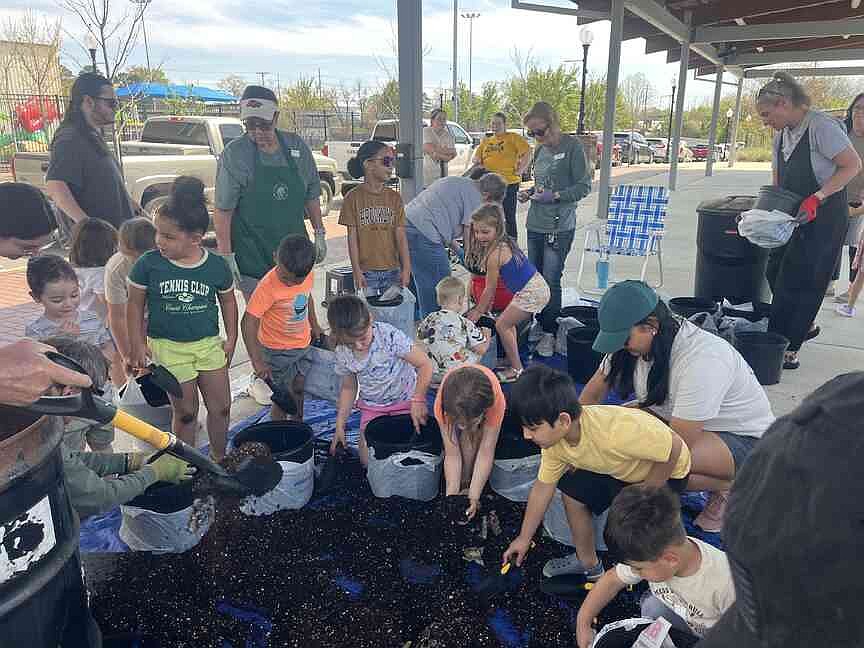 Children put their little shovels to work Monday at Playscape during a garden activity with Dirt Friends Garden Group.