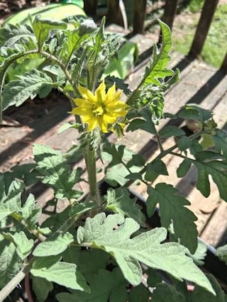 I have tomato seedlings hardening off, just waiting for warmer weather to plant. They started flowering (I know I need to remove the flowers) and Wow! The Black Krim flower is larger than any tomato flower I've ever seen! It almost looks like a baby sunflower.