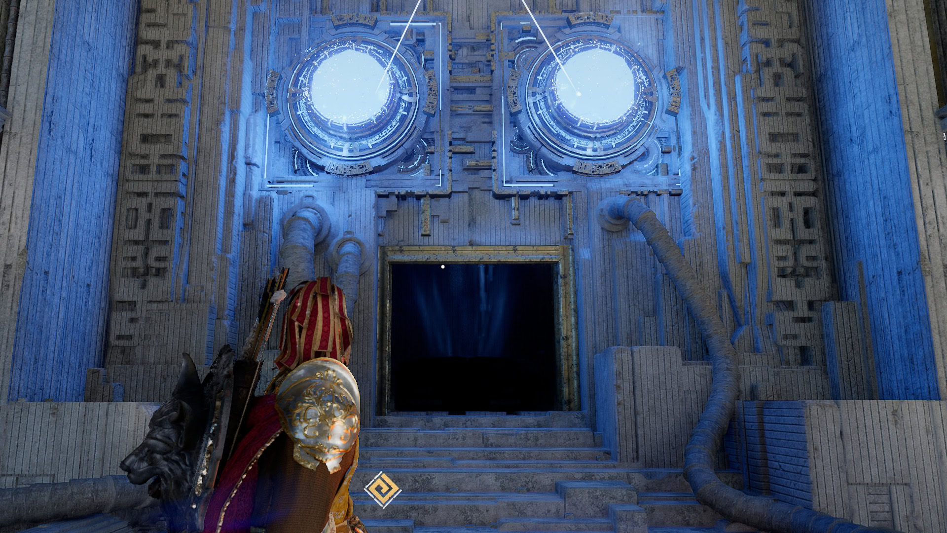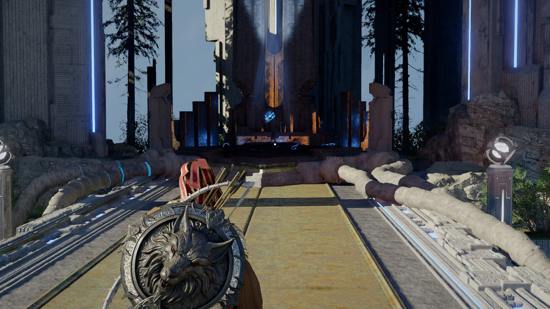 Once there, head to the end of the Sanctorum and access the Skybridge behind it.