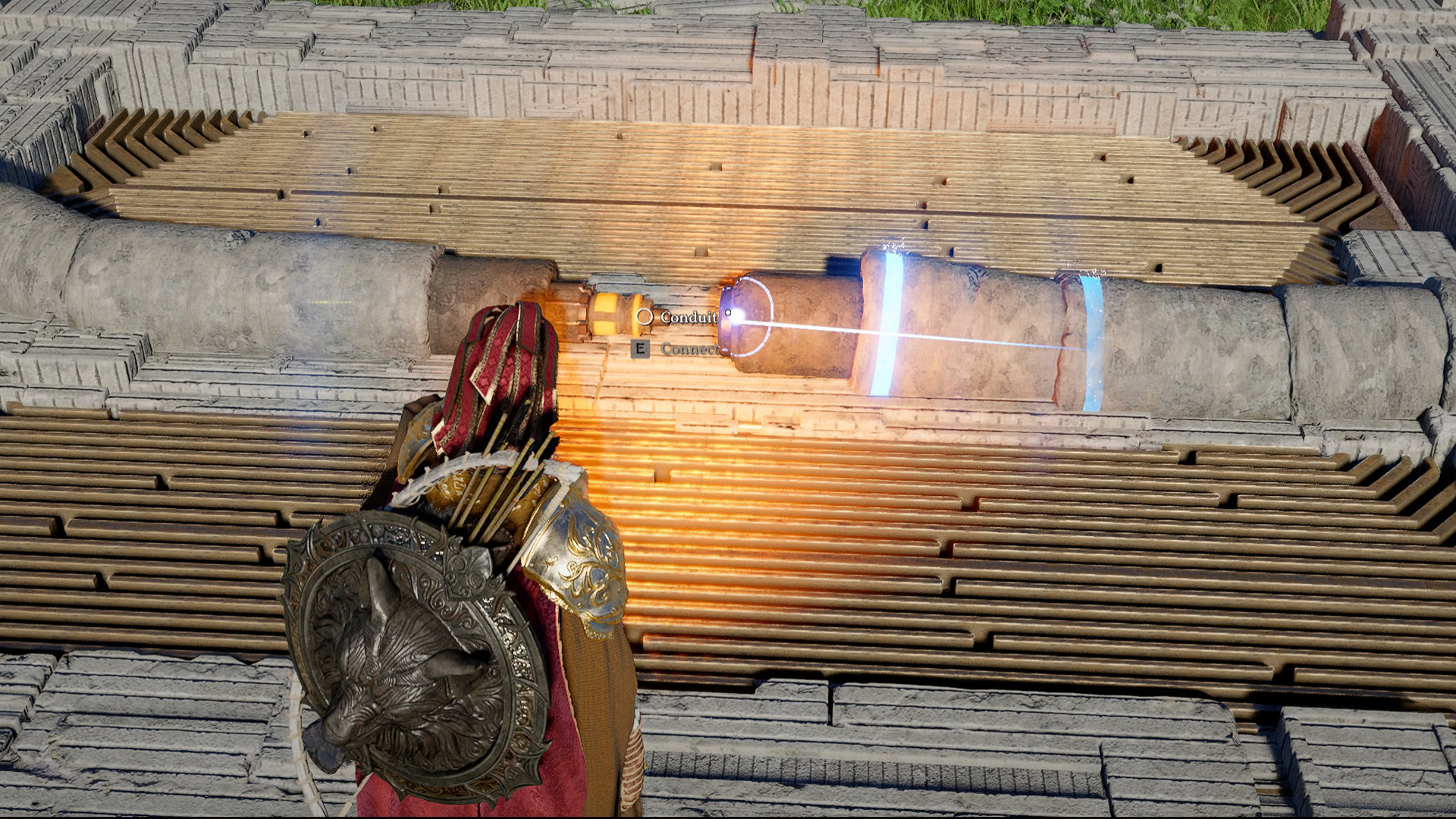 Upon reaching the top, look near the air vent we just came from, and we’ll find a Conduit. Connect is a similar way to the one seen during the Kilnden Workshop Puzzles.